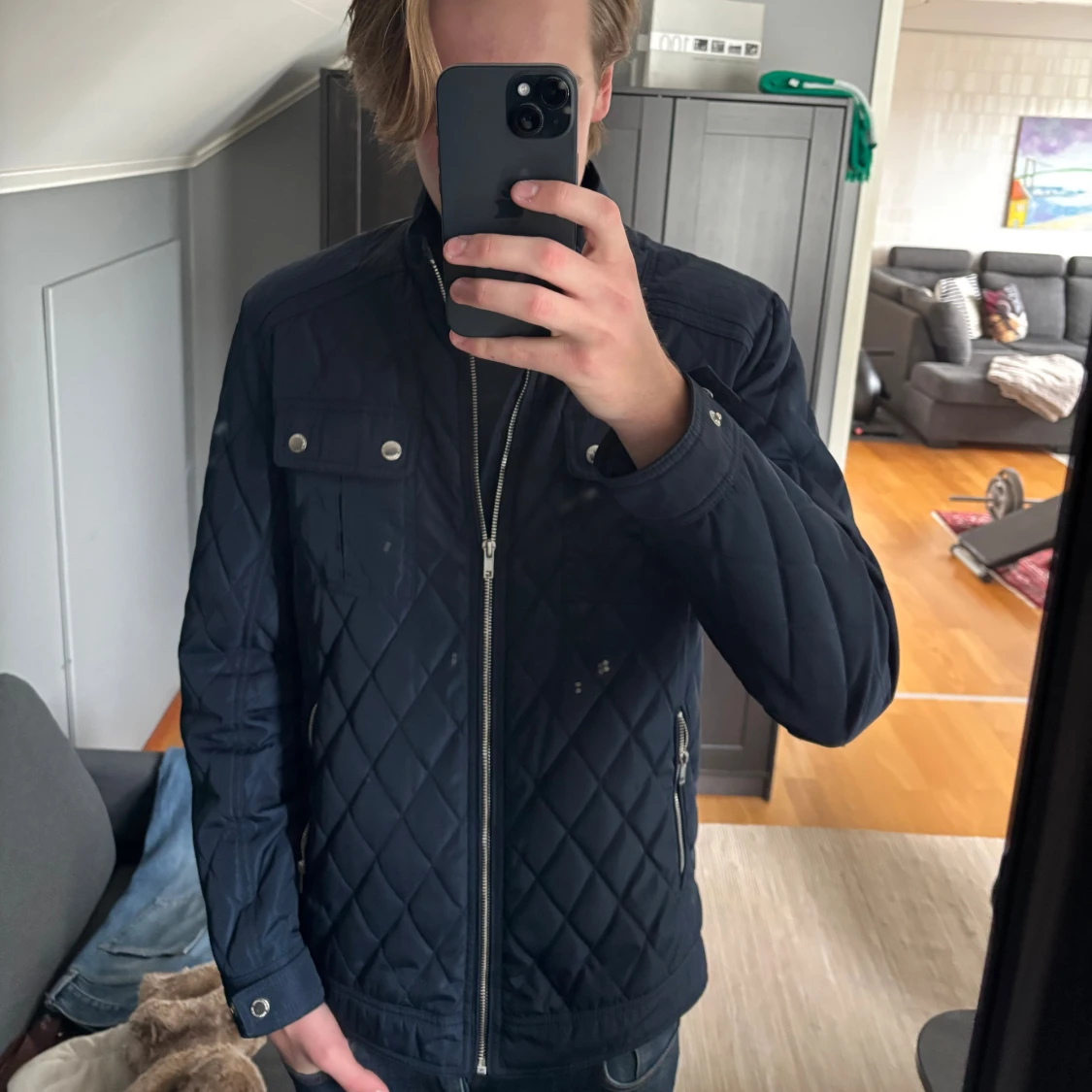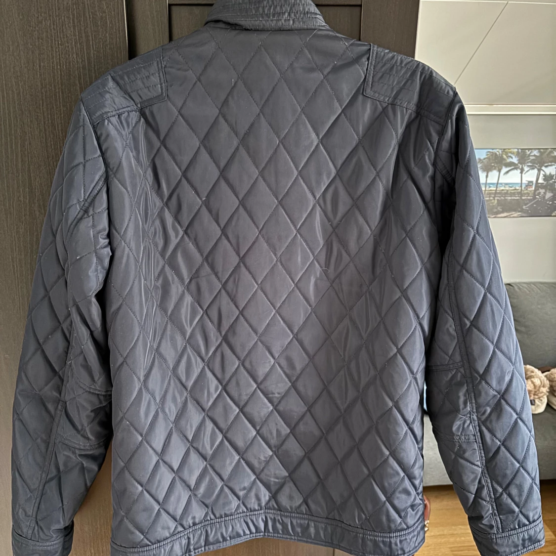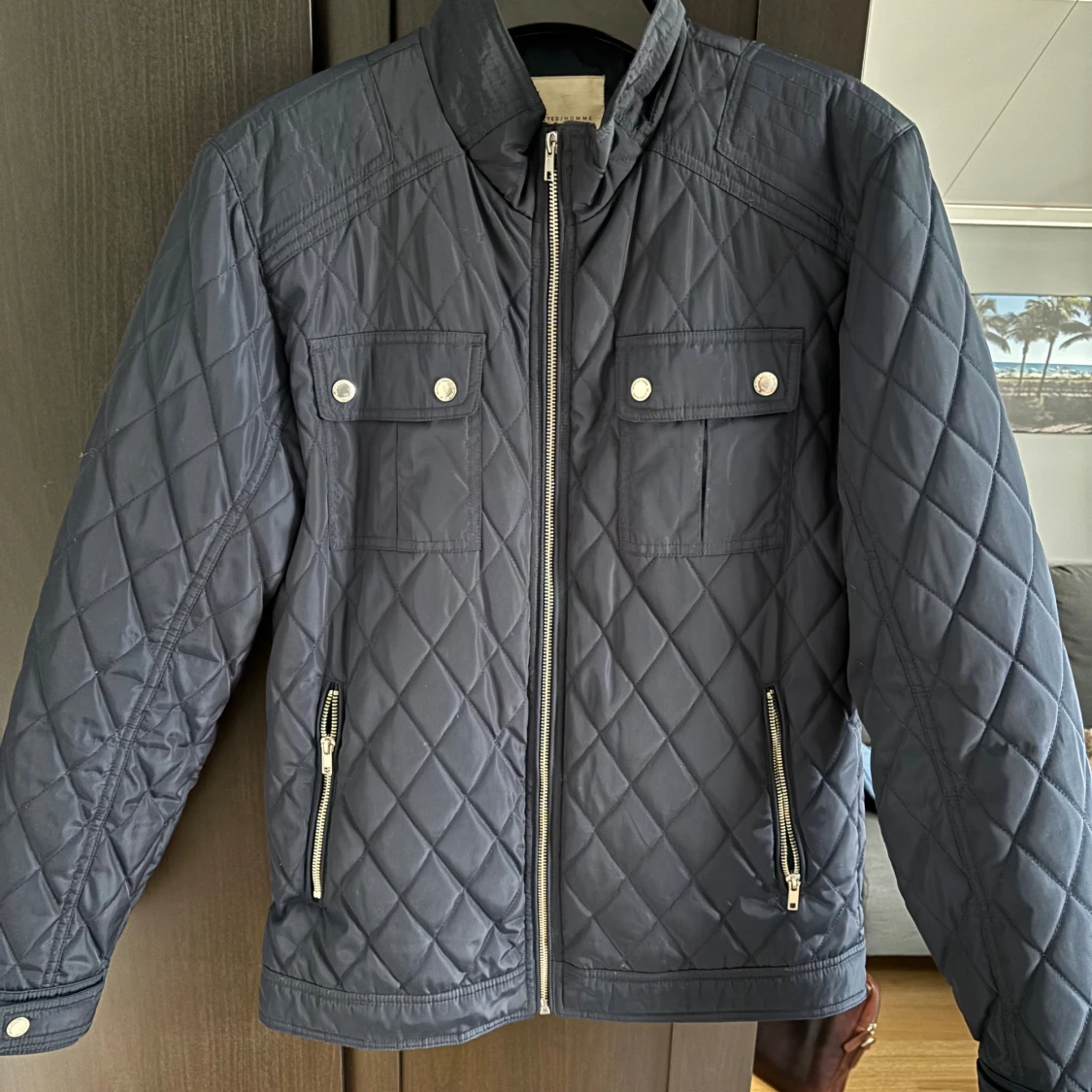 Snygg mörkblå quiltad jacka från semester homme. Perfekt för dig som gillar stilren och modern look. Passar perfekt nu till hösten. Kontakta vid frågor!