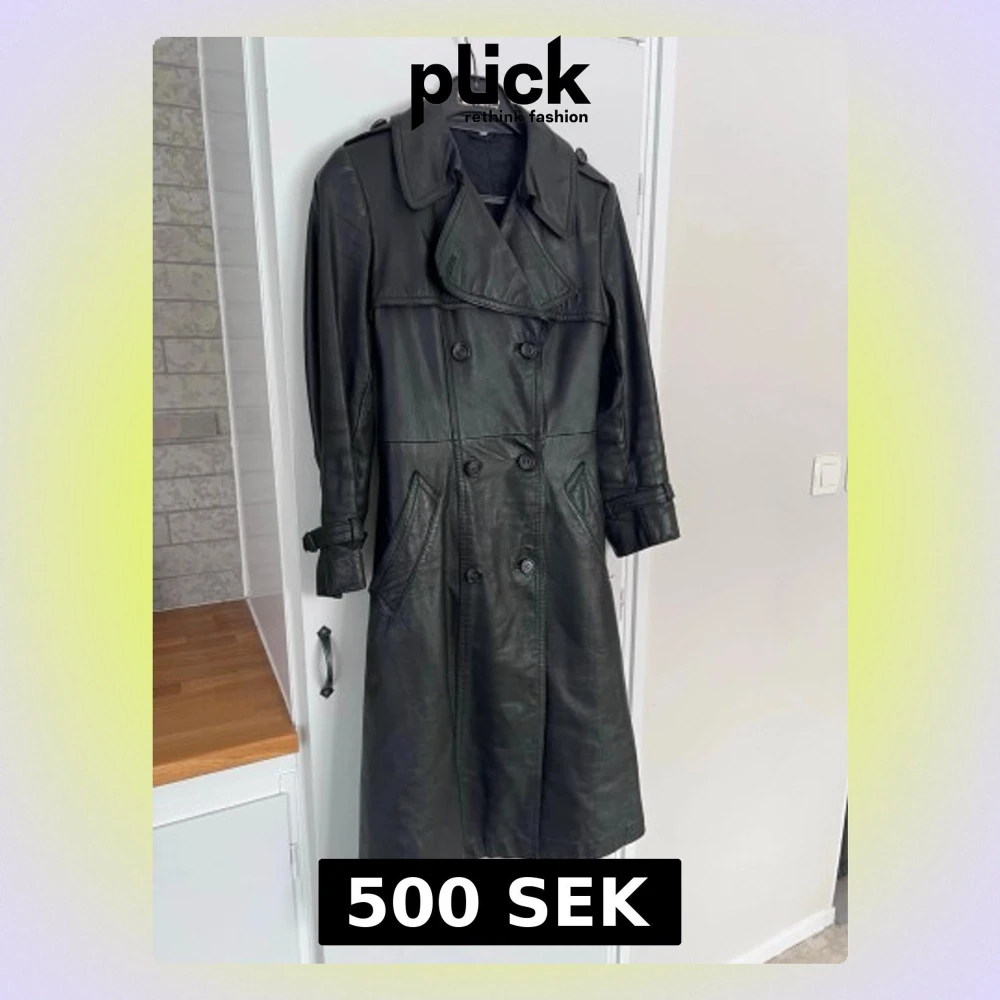 Säljer en svart vintage skinnkappa från 70-talet. Ärvt den av min mormor men den var inte i min stil, så därför väljer jag att sälja den. Jackan har dubbelknäppning, bred krage, axelklaffar med knapp och justerbara spännen vid ärmsluten och ryggen. Står stl 38 men den är lite liten i storlekens så skulle säga att det är en 36. Lite utsvängd längst ner med slits bak. En liten vit prick på framsidan, knappt synbar. Vet ej märke eller material. Tror inte det är äkta skinn. Fler bilder? Hör av dig!