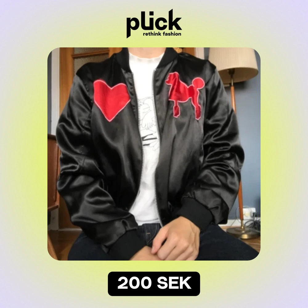 Bomberjacka i siden med patches. Rolig och unik jacka med pudelpatches och hjärtan🐩❤️ Bra skick Strl 36/38
