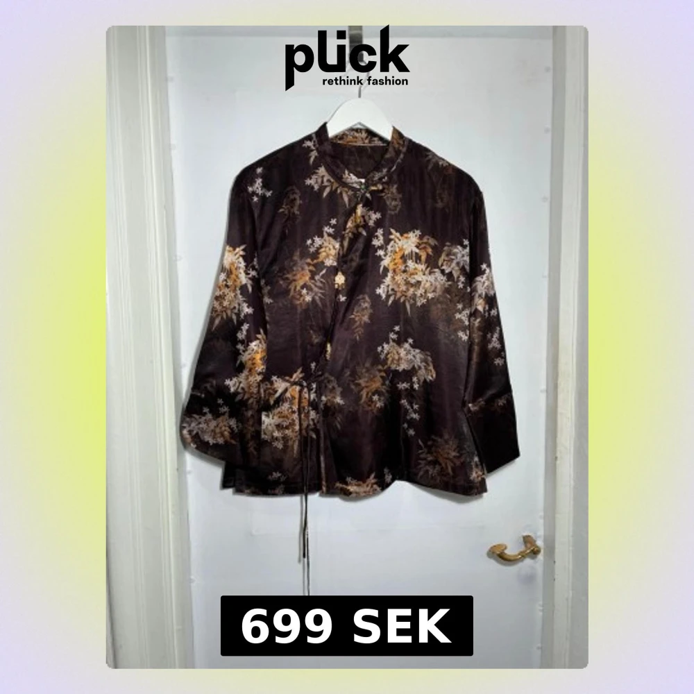 Sofistikerad jacka i 100 % siden med ett mjukt, poetiskt blommönster i dämpade mörka toner. Tyget är lätt, följsamt och har en naturlig lyster som ger plagget ett exklusivt uttryck. Den lätt figurnära men bekväma passformen tillsammans med knytbandet framtill gör att jackan kan justeras efter kroppen. De diskreta dekorativa detaljerna ger en subtil orientalisk känsla utan att bli för markerad. 🧵 Material • 100 % siden 📐 Passform • Bekväm modell med justerbart knytband • Lätt att bära både