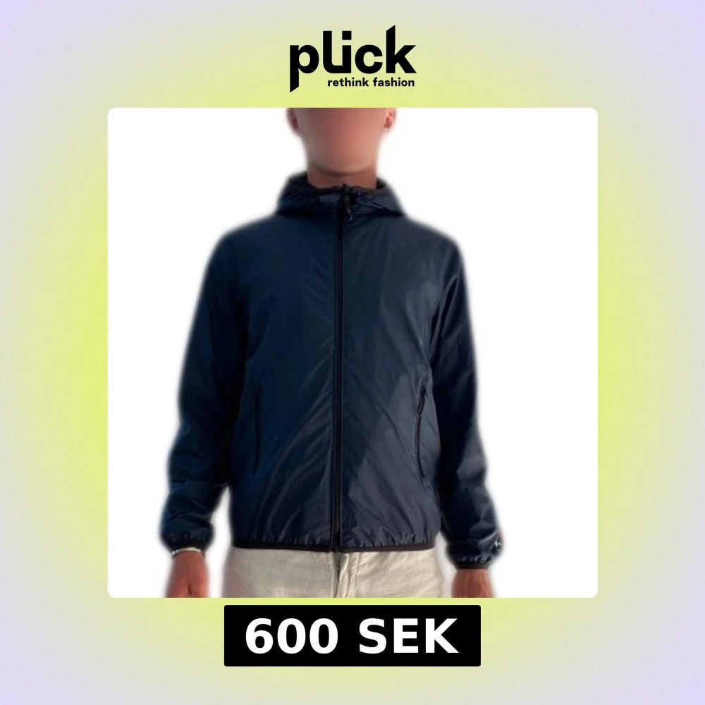 Snygg mörkblå vindjacka från Replay med huva och dragkedja framtill. Jackan har två fickor med dragkedja och en röd Replay-logga på ärmen. Perfekt för blåsiga dagar. Storlek 166 cm motsvarar XS, men passar XXS.