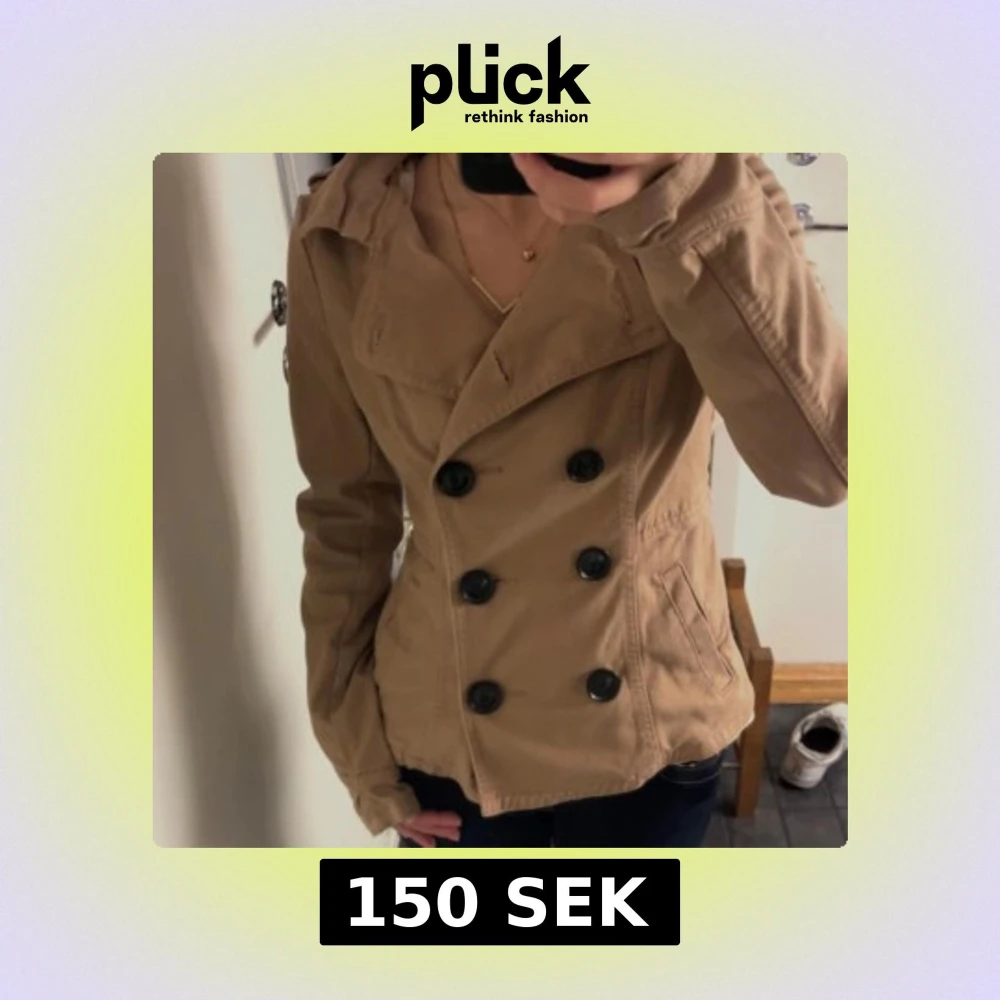 Snygg beige/brun skepparkavaj med svarta knappar. Står inte storlek men skulle säga att det är xs/s💕