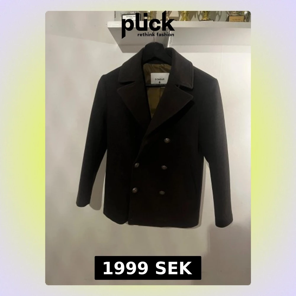 Stilren mörkbrun skepparkavaj från Dondup med klassisk dubbelknäppning och snygga metallknappar med stjärndetalj. Jackan har bred krage och är helfodrad med olivgrönt innerfoder. Perfekt för dig som vill ha en tidlös och clean look.