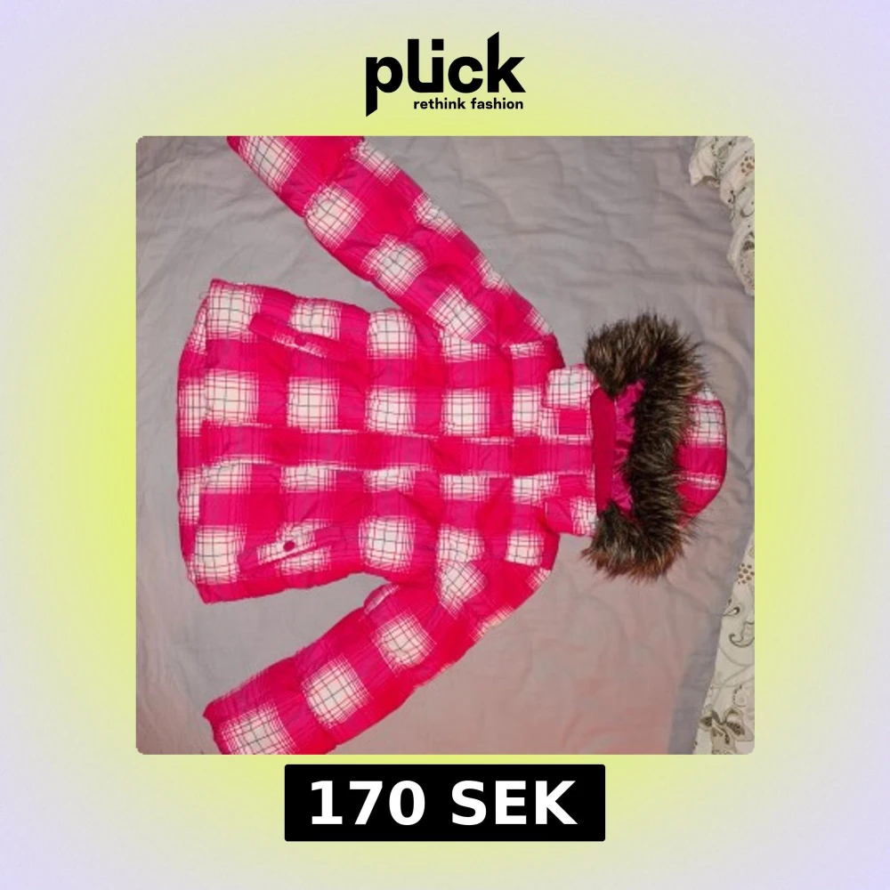Säljer en cool rosa vinterjacka med rutigt mönster och en mysig pälsdetalj på huvan. Jackan har långa ärmar med ribbade muddar och en praktisk dragkedja framtill. Perfekt för att hålla sig varm och stilren under kyliga dagar. #barnkläder #vinterjacka #rosa