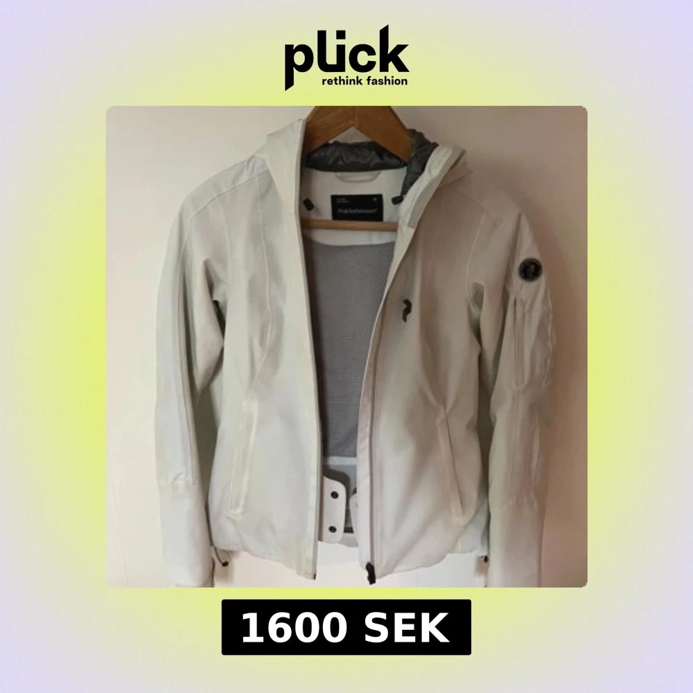 Snygg vit jacka från Peak Performance, precis köpt från Vinted men satt inte som jag ville. Den är storlek 38 men skulle snarare säga 34/36. Den är i fint skick men lite lite missfärgad längst, det går säkert bort om man vill ta tag i det! Figurnära passform med många fickor.