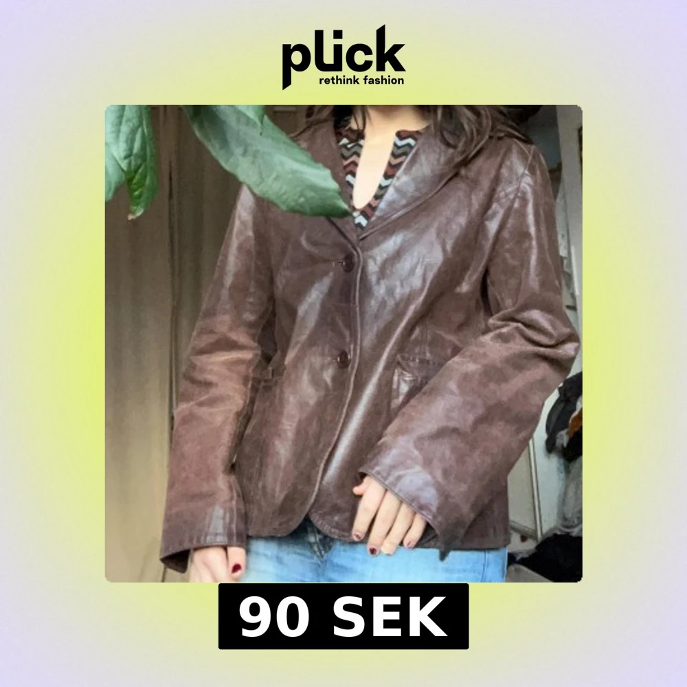 Snygg brun skinnjacka med knappar framtill och klassisk krage. Jackan har en normal passform och långa ärmar. Perfekt för höst och vår. Storlek L i mansstorlek men blir snyggt oversized på mig som är M i kvinnostorlek.