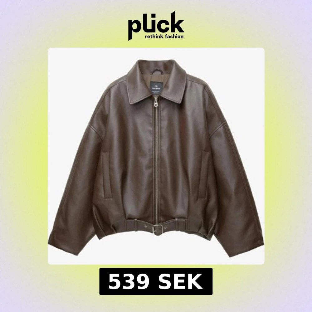 Säljer en brun skinnjacka från Pull&Bear med oversized passform. Jackan har klassisk krage, dragkedja framtill och bälte i midjan för extra edge. Har aldrig använt jackan pga fel storlek, prislapp finns på.