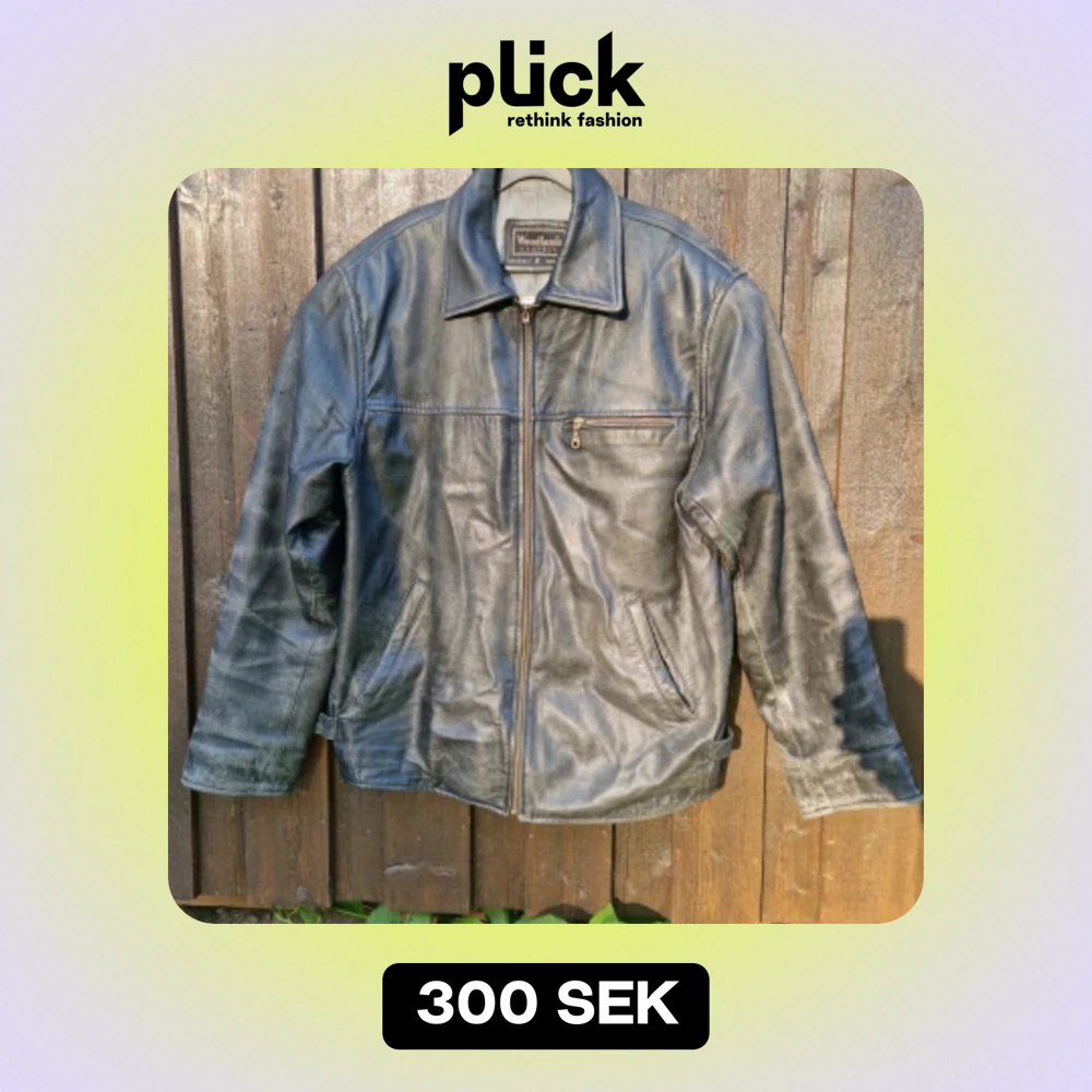 Svart läder jacka med ett utslitet utseende. Tillkommer två spännen vid var sida, samt en bröstficka och även en innerficka. Skick är (7/10). Det felas en bit av handtaget på löparen men blixtlåset fungerar felfritt. Godtar yttligare frågor om 💰&📏