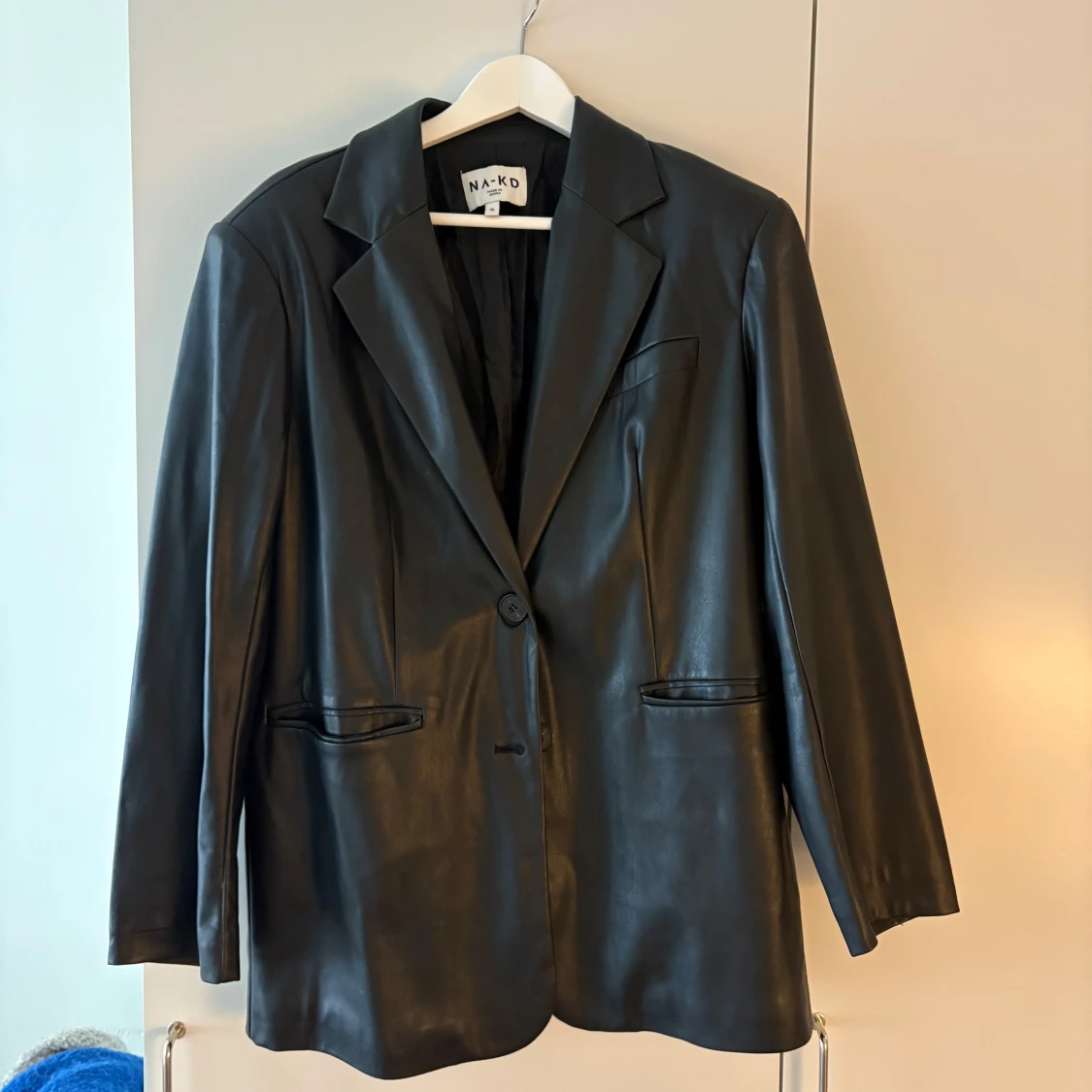 Oversized blazer i skinnimitation! Har axelvaddar!
