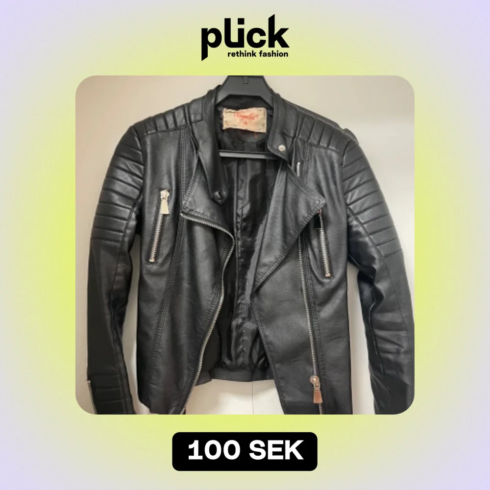Skinnjacka i storlek 38 i använt skick och lite sliten upptill. Pris 120kr.