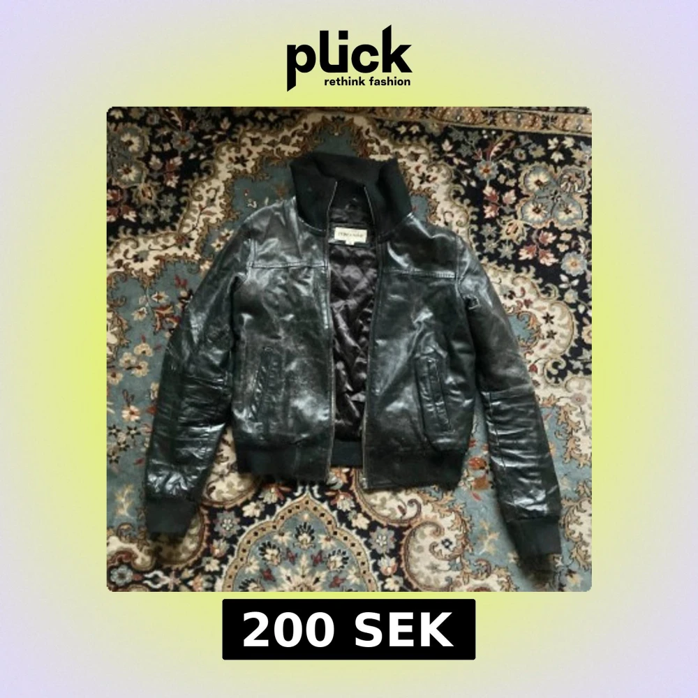 Tuff kort skinnjacka i äkta läder. Står storlek M men skulle säga S. Jackan har några mindre defekter vilket sänker priset, men ändå hyfsat bra skick!
