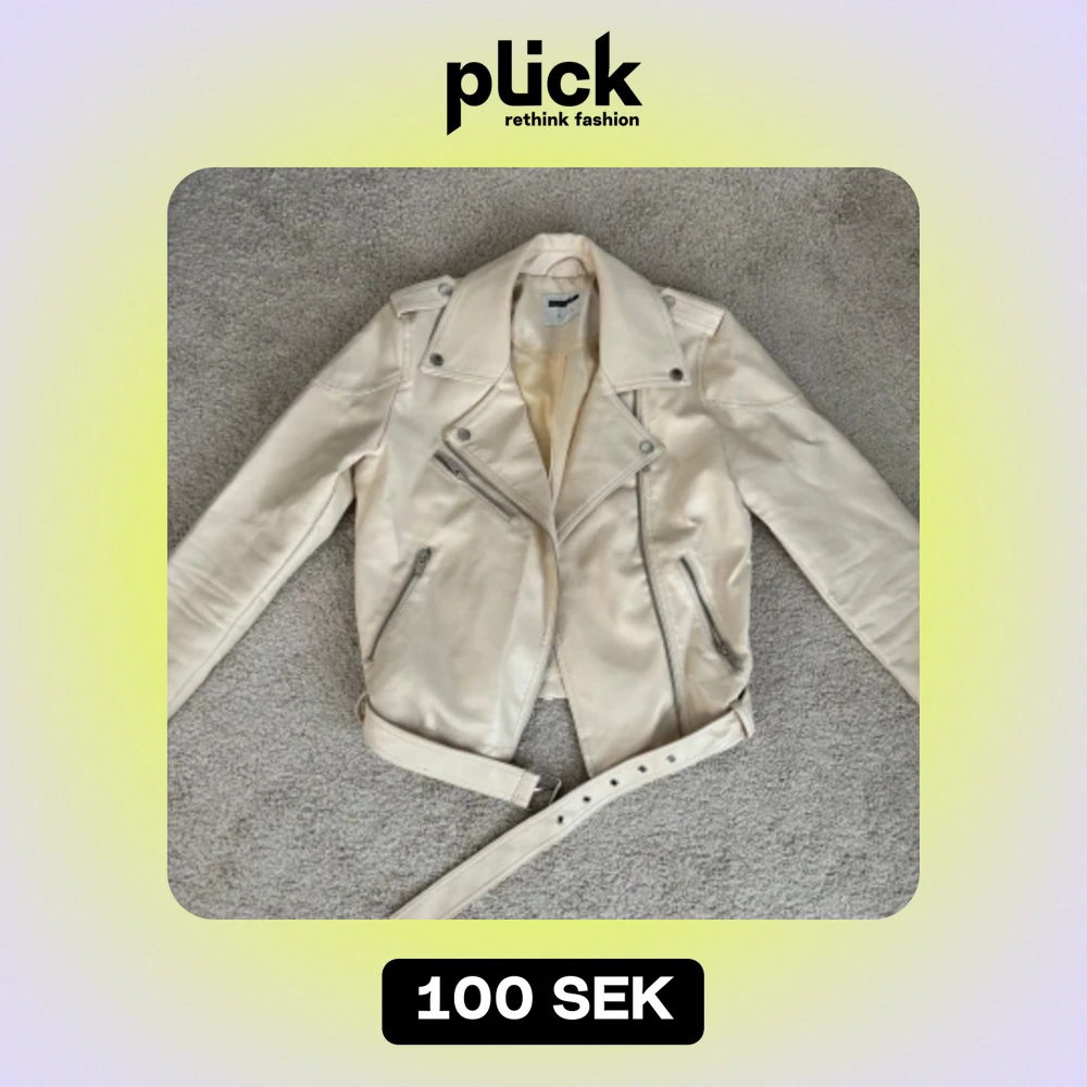Snygg skinnjacka i storlek S. I bra skick men tyvärr en missfärgning/fläck bak på jackan (Se bild).