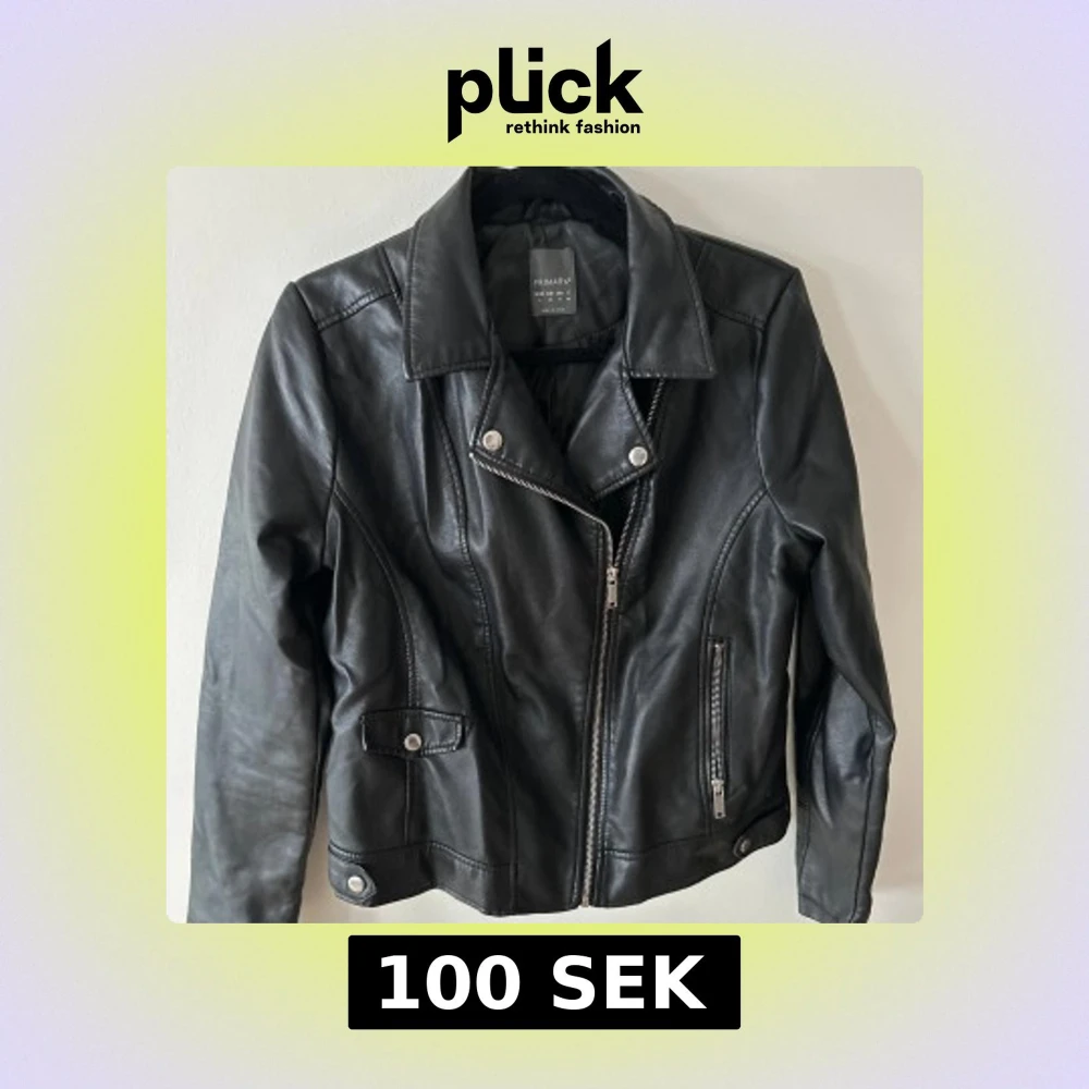 Svart skinnjacka. Står stl 42 i jackan, men upplevs mindre.