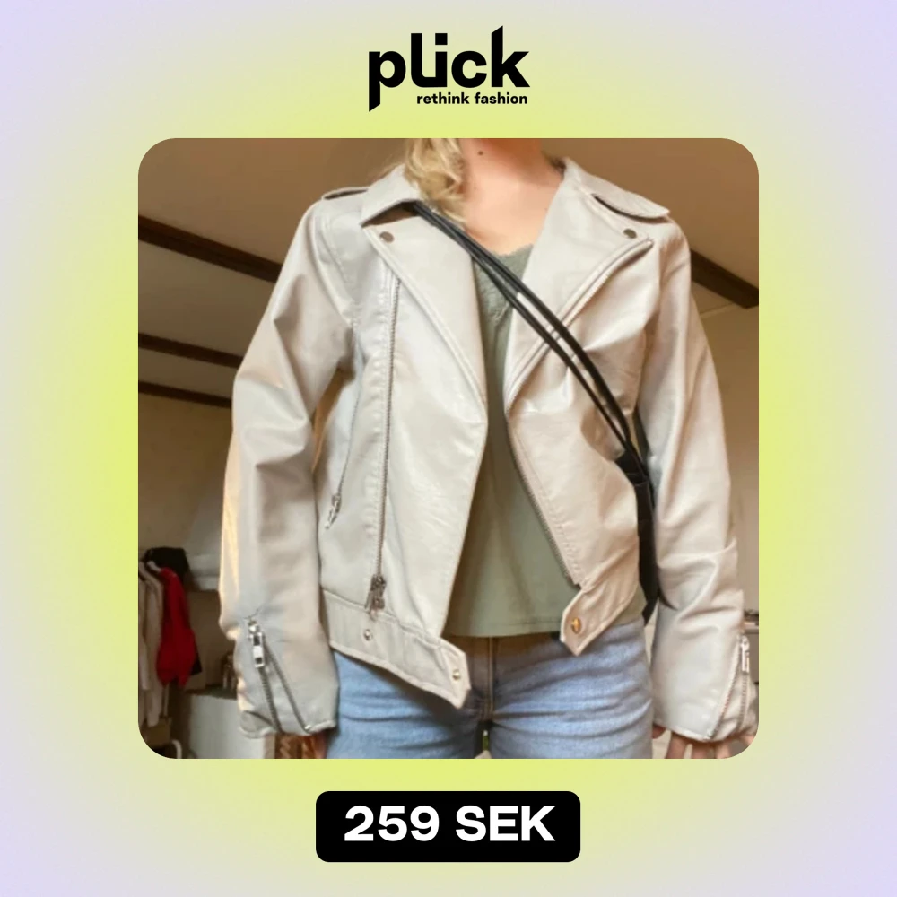 Skitcool vit skinnjacka! Köpt på en vintagebutik för 599:- Storklek XL men sitter snyggt oversize på mig som har xs/s i vanliga fall😊🤍