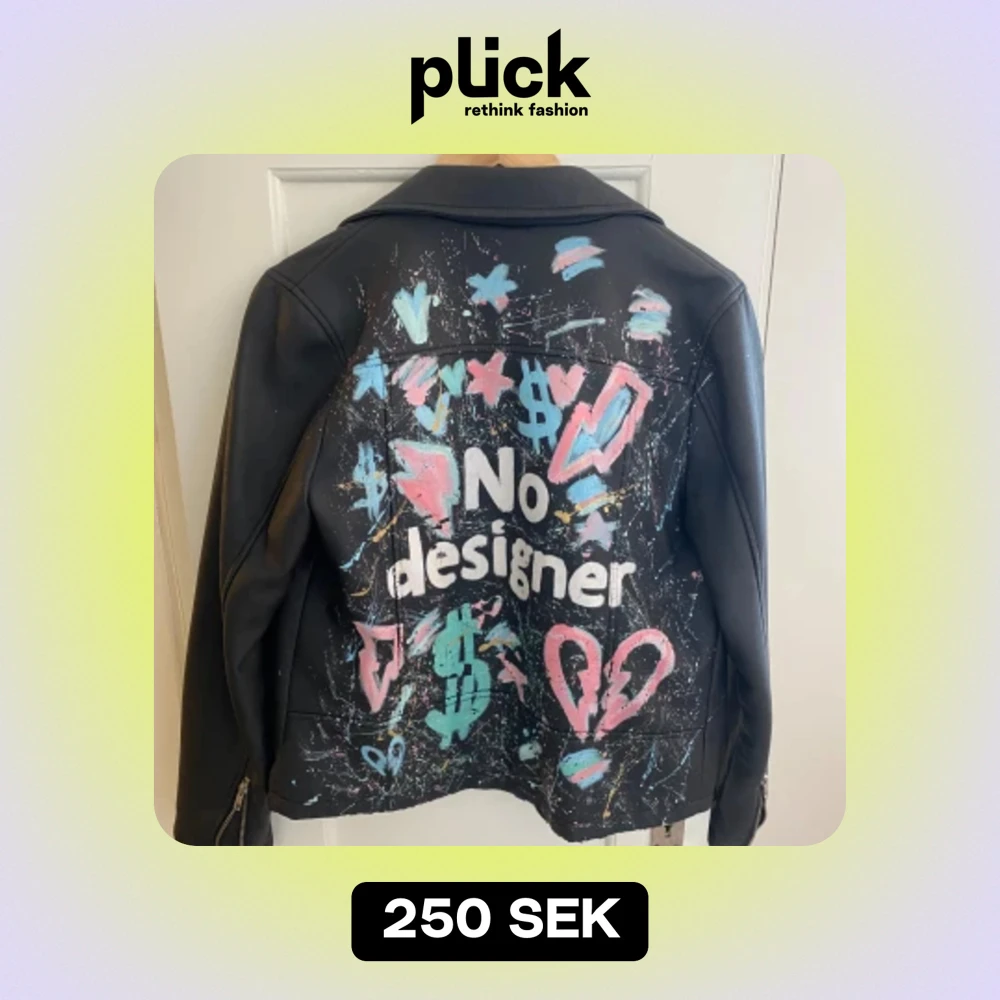 Snygg skinnjacka med tryck på ryggen, de håller i regn☔️😍