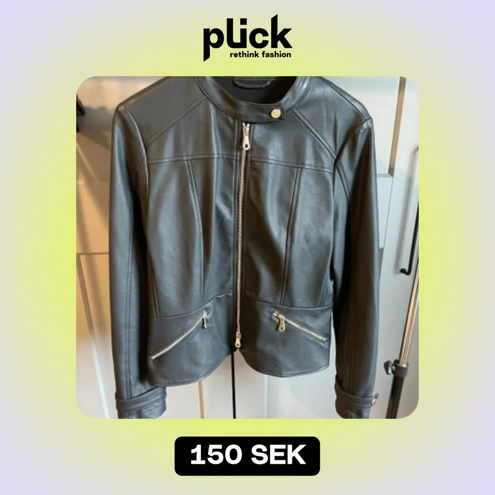 Skinnjacka i imitation. Aldrig använd. Storlek 42, mindre i storlek likt en 40.