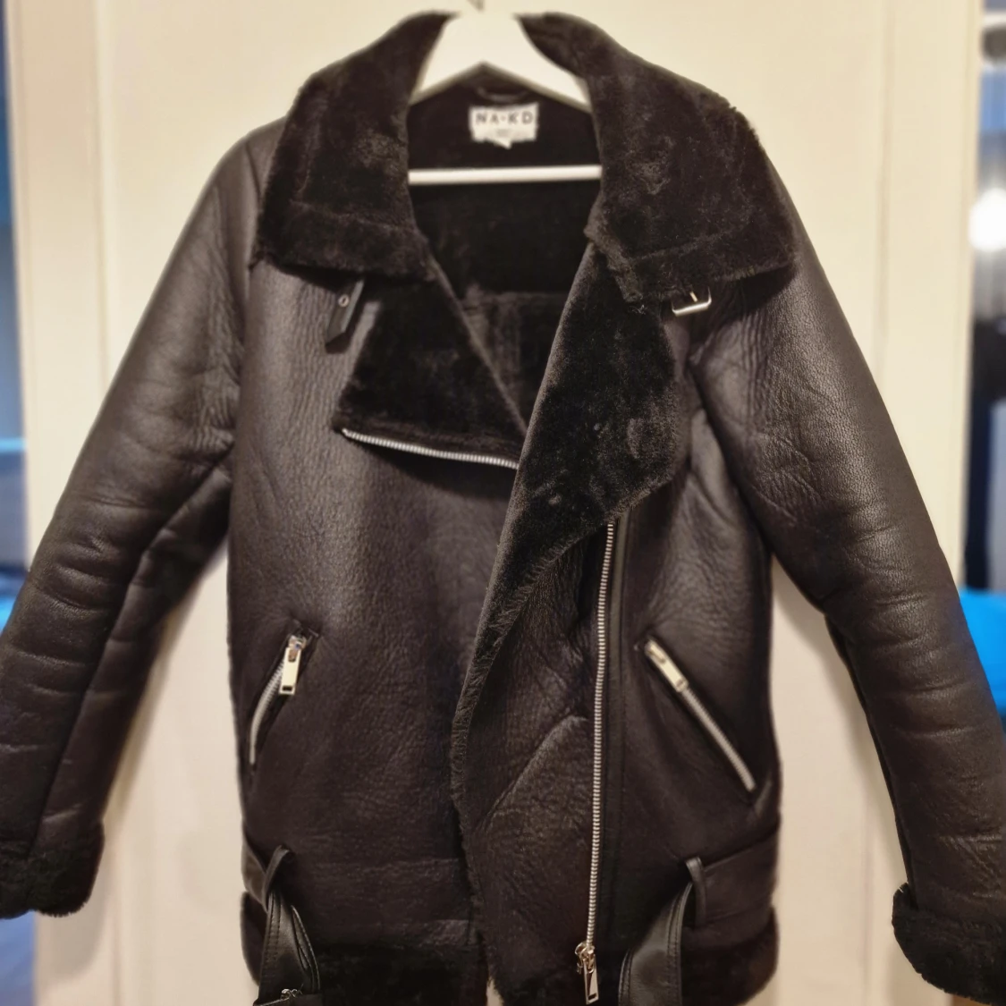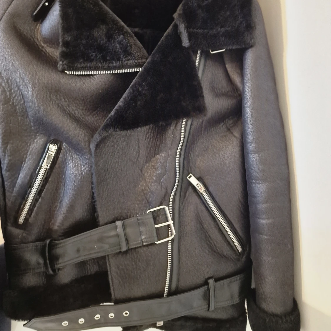 Svart aviator jacka med bälte nertill och detaljer i silver. Supersnygg med boots till hösten. Använd 1 gång och har blivit hängandes i garderoben.