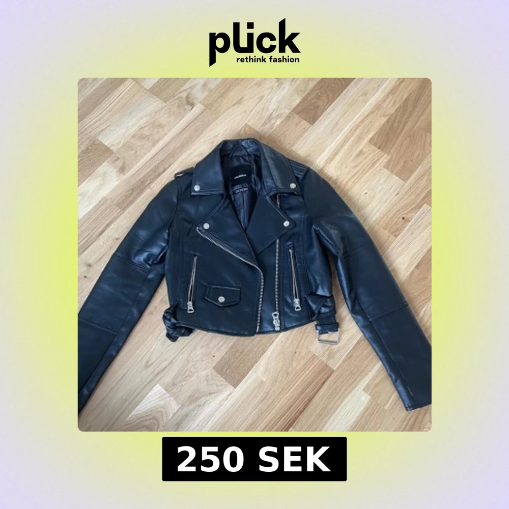 Snygg svart skinnjacka från Pull&Bear med klassisk bikerstil, silvriga dragkedjor, knappar och bälte i midjan. Jackan har lång ärm och coola detaljer som ger en edgy vibe. Perfekt för dig som vill ha en stilren och trendig look. Pris kan diskuteras