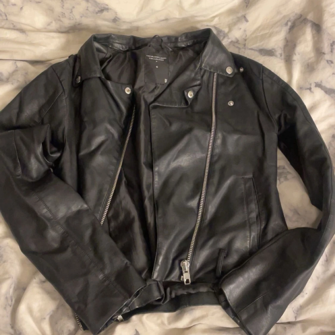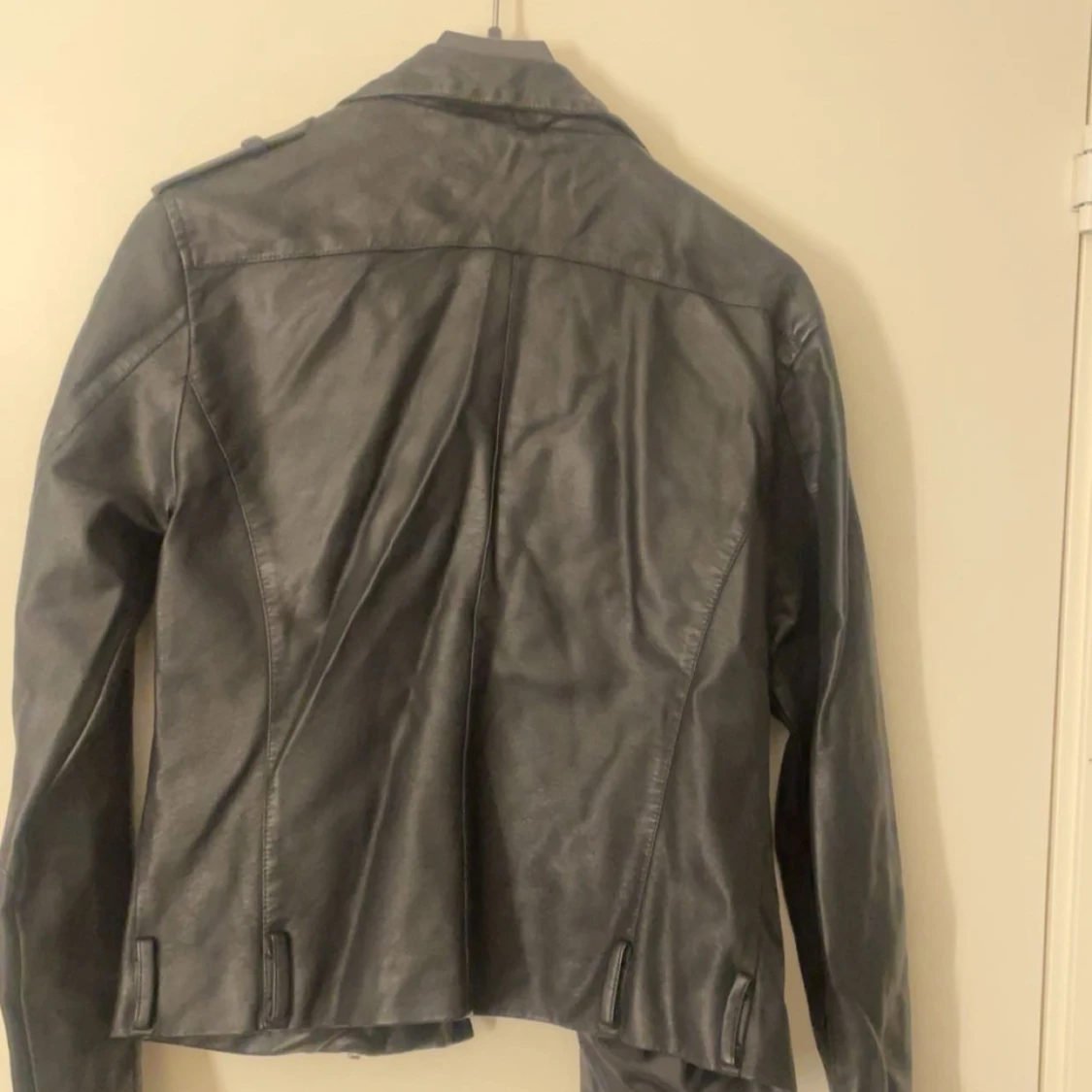 Snygg svart skinnjacka från lager 157 i storlek S. Jackan har klassisk bikerstil med silverfärgade dragkedjor, knappar och krage. Materialet är skinn och passformen är normal. Väldigt snygg!