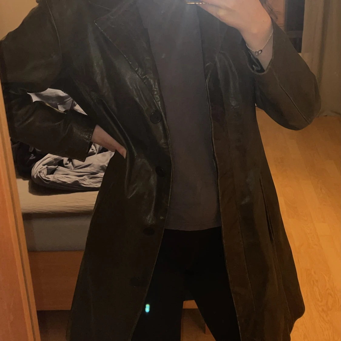 Vintage äkta skinnjacka från 90 talet🍸🪐 Mörkgrön färg, storlek 14, knappt använd🦥