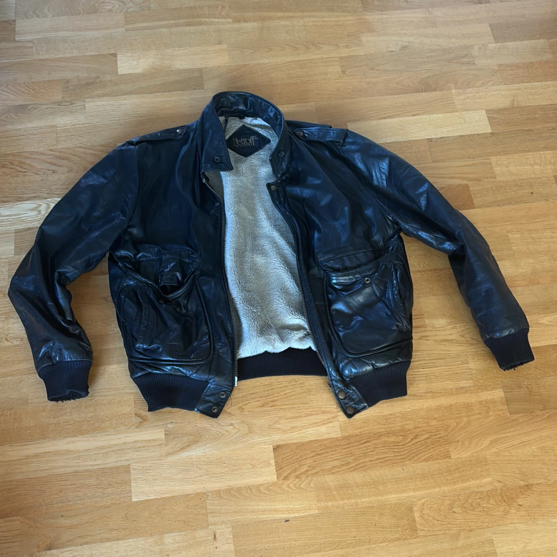 Svart skinnjacka med fodring på insidan så perfekt nu inför hösten och vintern! Jackan är rätt så sliten så priset går att diskuteras!