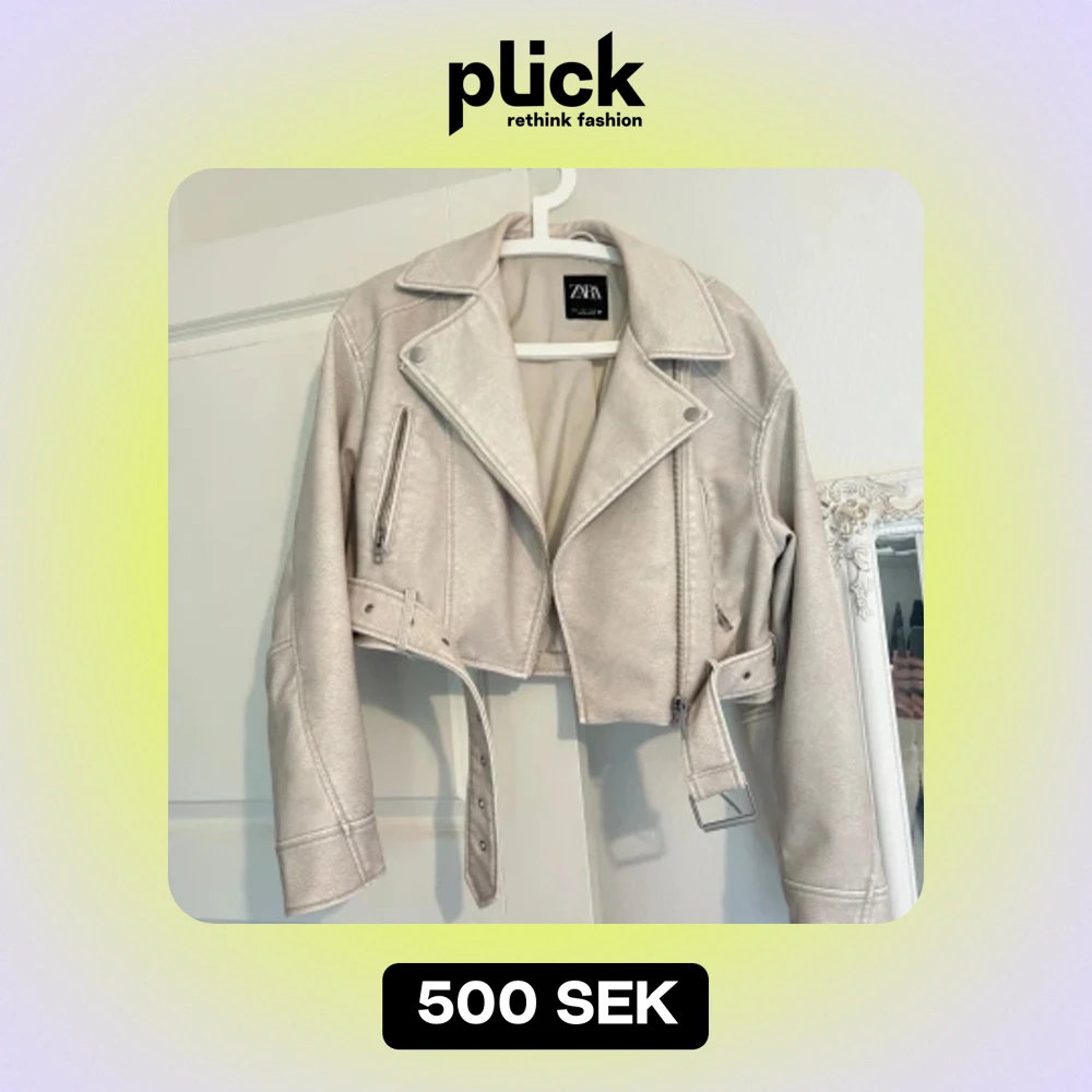 Säljer denna trendiga skinnjacka från Zara som är helt slutsåld. Jackan är endast använd ett par gånger, därför i nyskick. Storlek S, köpt för ordinarie pris 700kr.