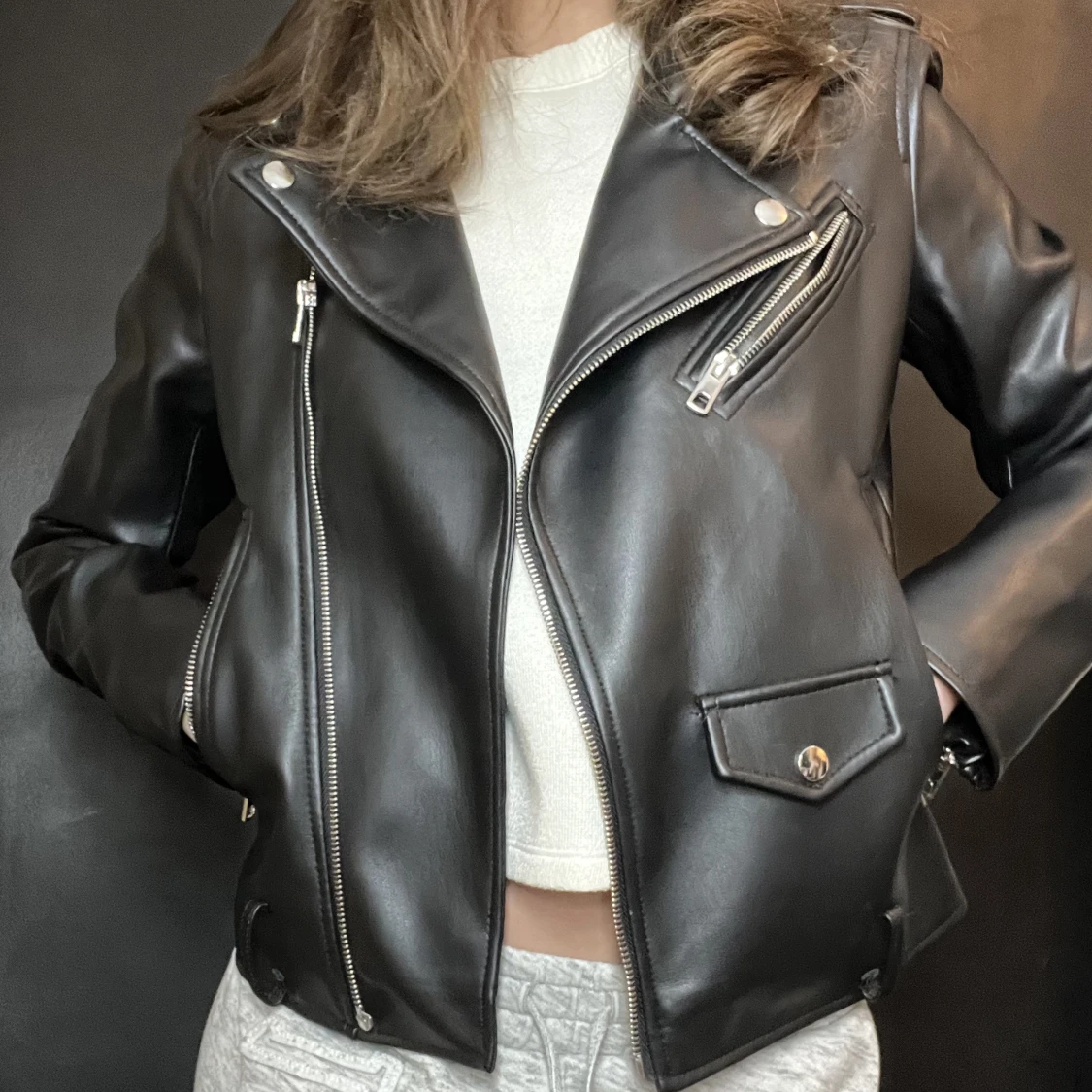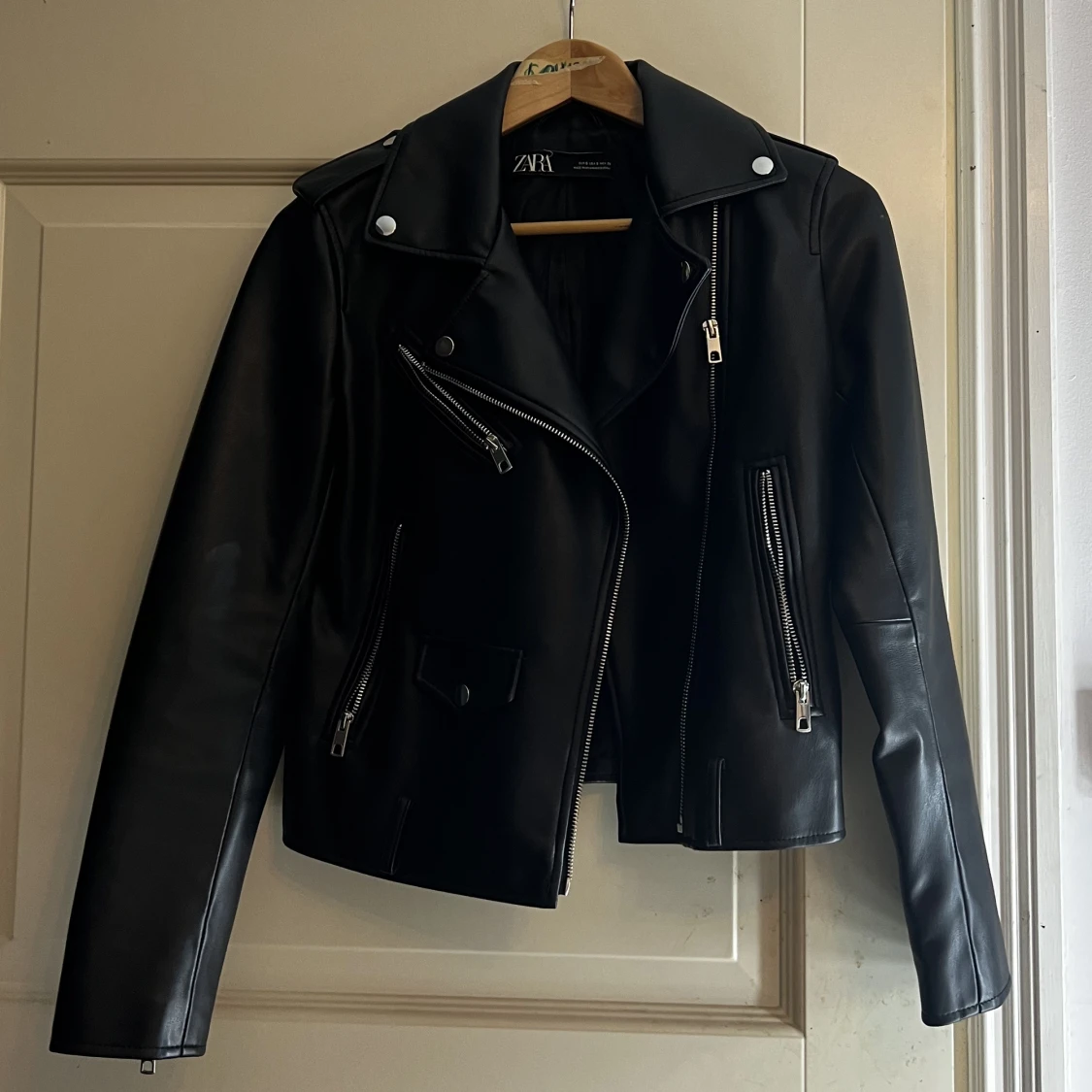 Säljer min skinnjacka från zara då jag köpt en ny modell och denna inte kommer till användning längre! Storlek s och köpt nån gång 2019 eller 2020💓pris kan diskuteras såklart❤️