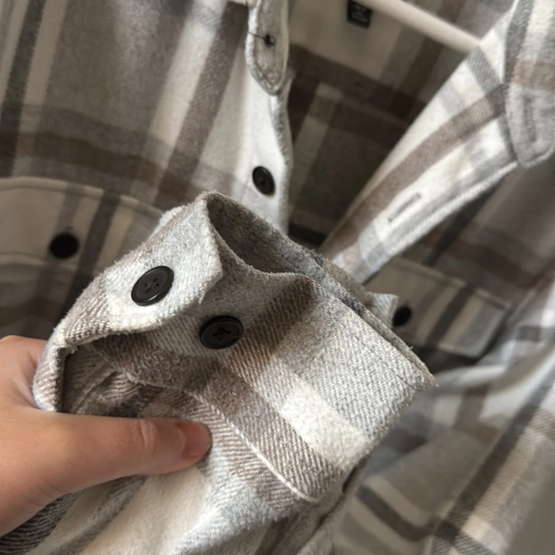 Beige/brun skjortjacka från h&m. Använd några ggr, lite nopprig efter tvätt (se bilder) Ser inget annat att anmärka på.
