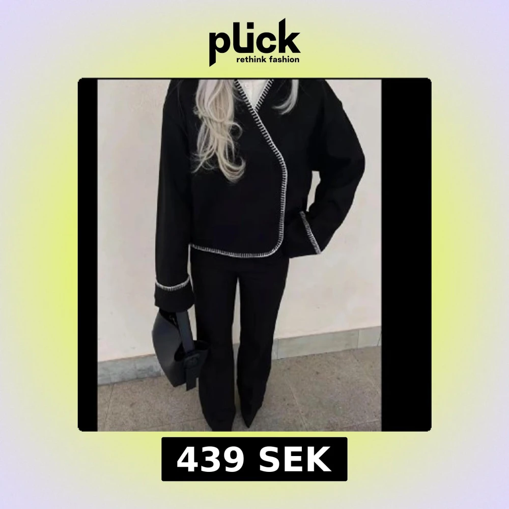 Snygg svart jacka med vita sömmar som är slutsåld från ginatricot som ger en stilren kontrast. Jackan har en v-ringad design och långa ärmar, perfekt för en chic look. Passar perfekt nu till våren och hösten o till både vardag och speciella tillfällen❤️❤️❤️ jackan är använd fåtal gånger🥰🥰