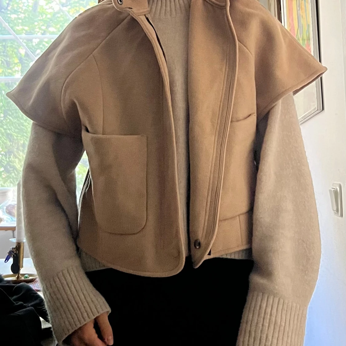 Stilren beige capeväst från Zara med huva och två stora fickor framtill, dragkedja och tryckknapp vid halsen. Perfekt för lager-på-lager och nu till hösten. Från barnavdelningen och är i Storlek 140 men passar xs/s 😊