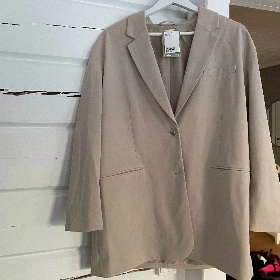 Beige blazer från hm i stel Small. Den är oversized jag har använd den till klänning matchande till boots. Skriv privat för fler bilder! 60 + frakt