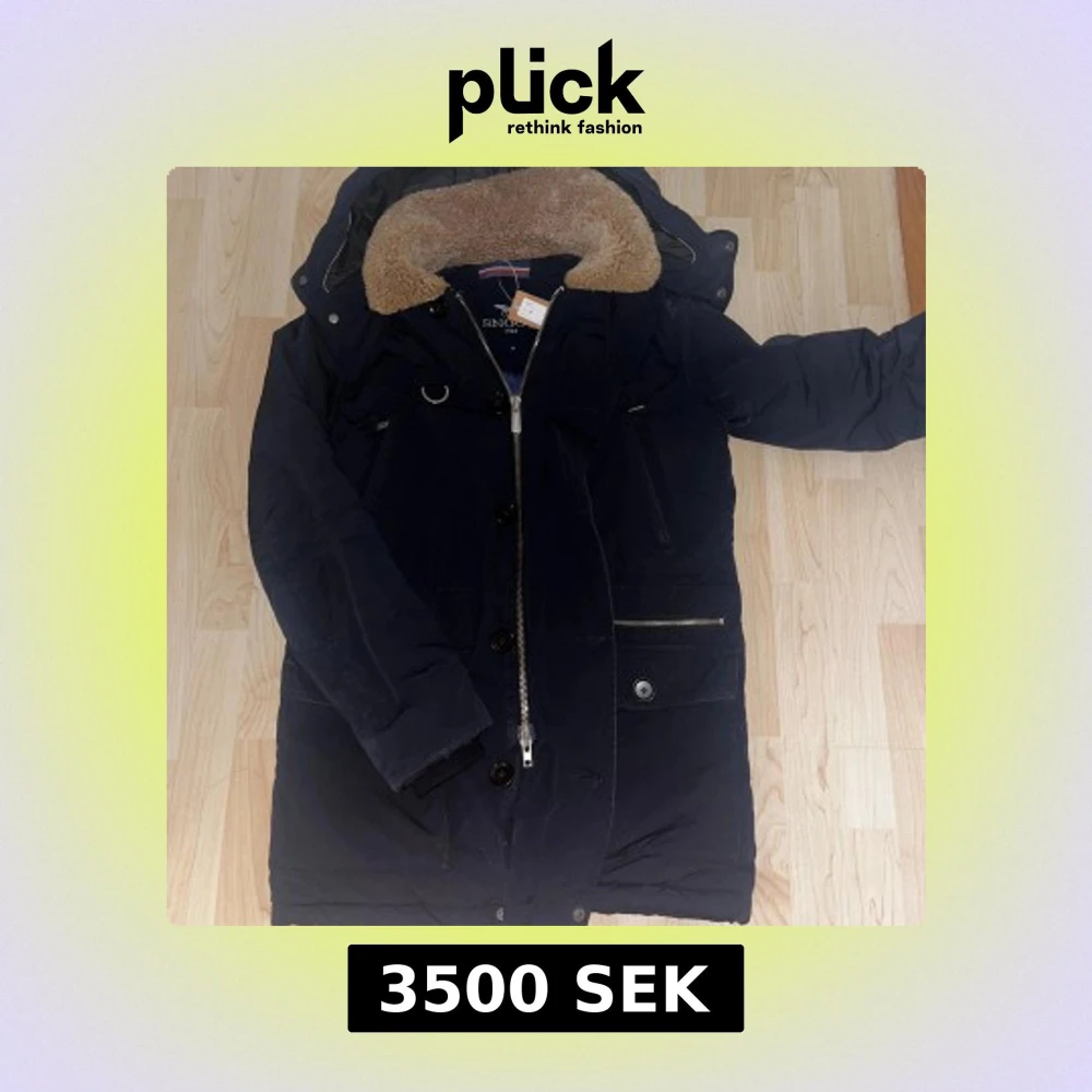 Stilren vinterjacka från Snoot i mörkblått med beige teddykrage, dragkedja och knappar framtill. Jackan har flera fickor, detaljer i metall och fodrad insida. Perfekt för kalla dagar med sin långa passform och varma material. Perfekt till vintern och sen höst. Passform: slimfit