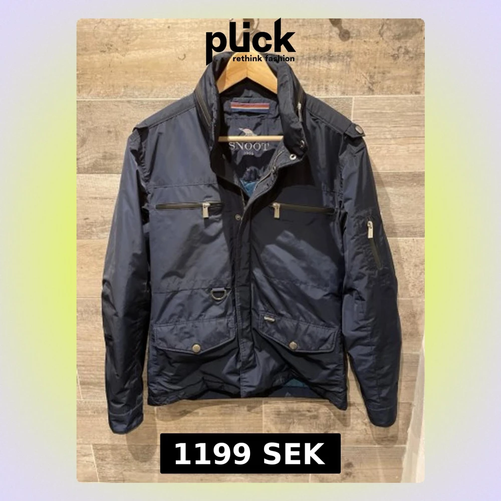 Snygg mörkblå vindjacka från Snoot med flera dragkedjeförsedda fickor, hög krage och coola detaljer som axelklaffar och metallknappar. Jackan är tillverkad i polyester och har en modern, normal passform. Perfekt för dig som vill ha en stilren och funktionell jacka.