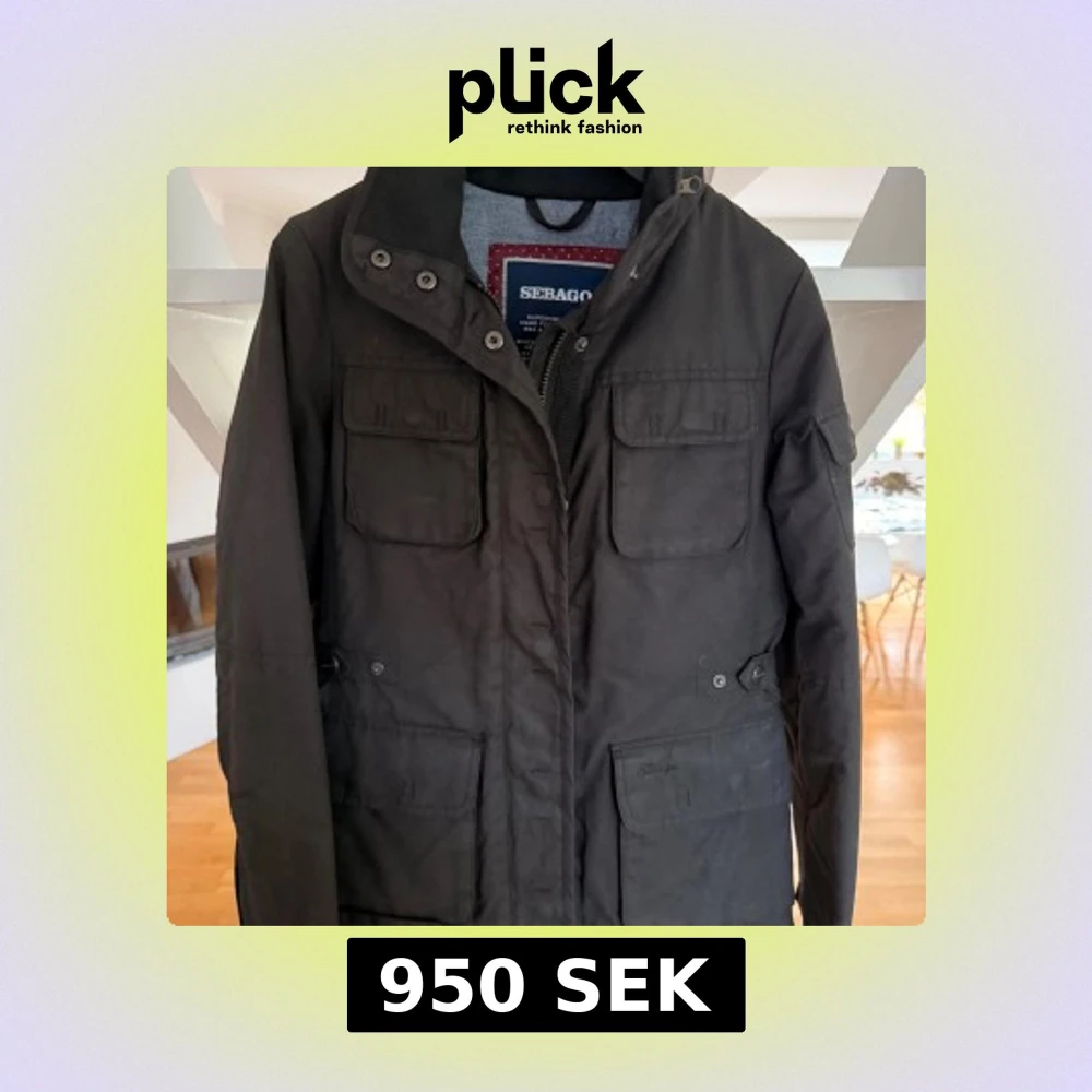 Svart parkajacka från Sebago med fyra stora fickor framtill, hög krage och diskret logga på ärmen. Jackan har dragkedja och knappar framtill samt justerbar midja. Perfekt för kyligare dagar och har en klassisk, stilren look.