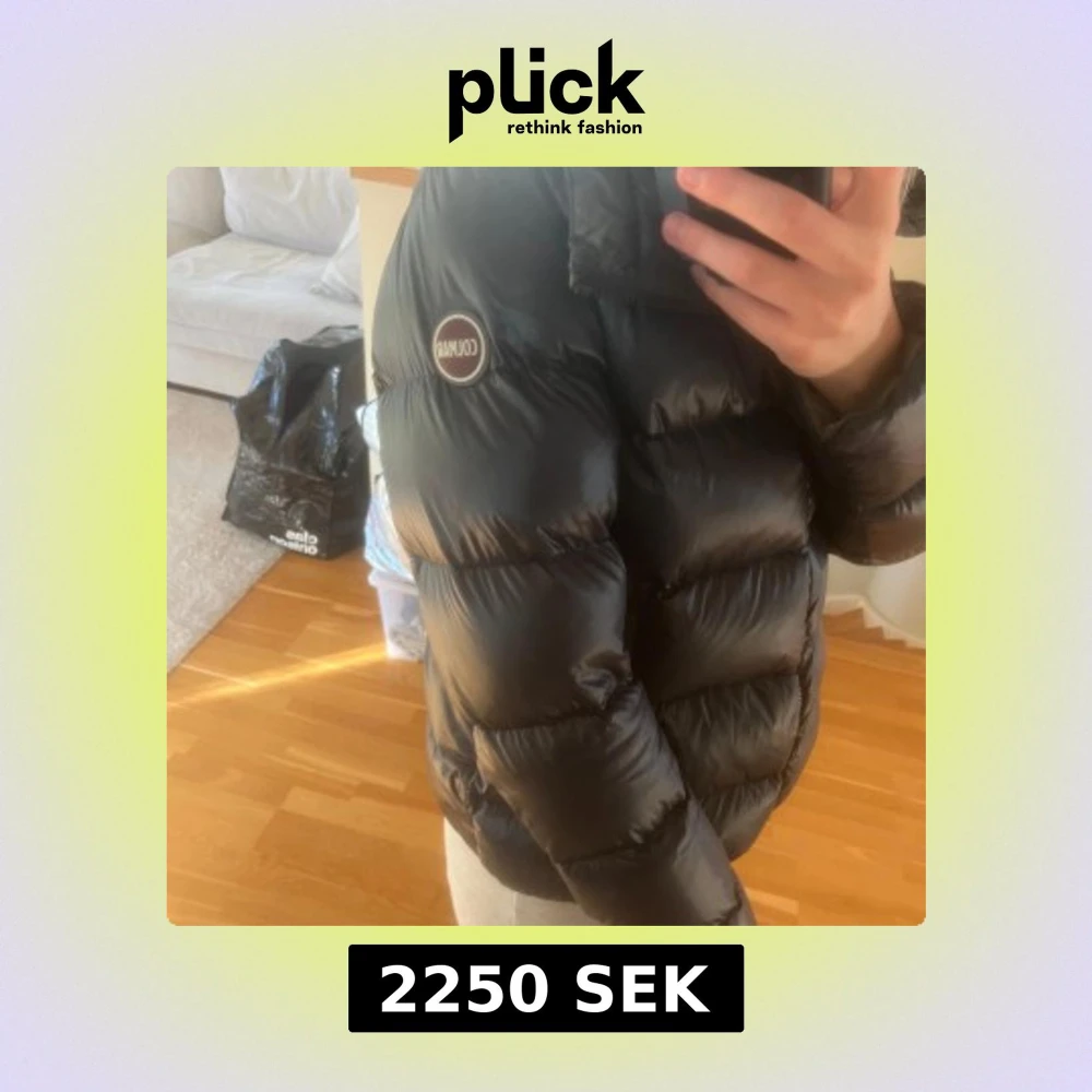 Säljer en mörkblå pufferjacka från Colmar med huva och markerad logga på ärmen. Jackan har dragkedja framtill och är quiltad med breda kanaler. Perfekt för kalla dagar och har en snygg, modern look.