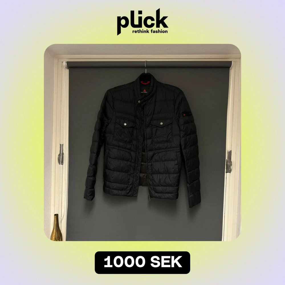 Säljer en snygg svart märkesjacka från Peuterey i storlek S. Jackan har en stilren design med dragkedja och knappar framtill. Perfekt för höst och vår, med långärmade ärmar och en quiltad look. Den är sparsamt använd och i bra skick 😊