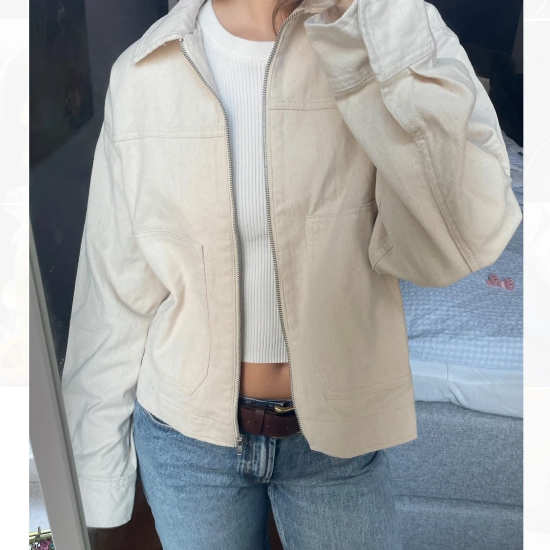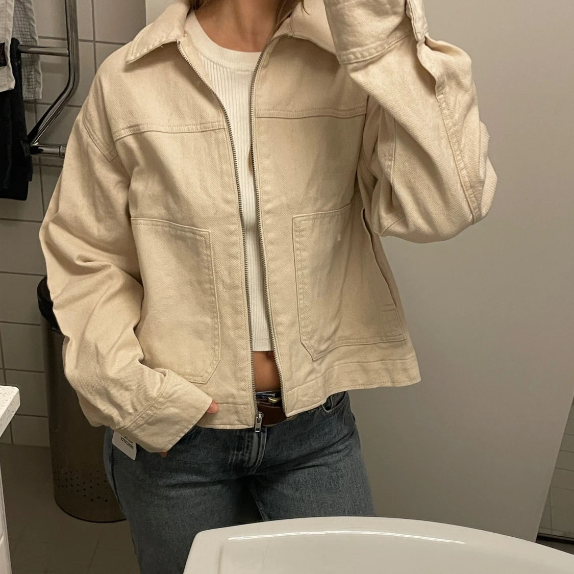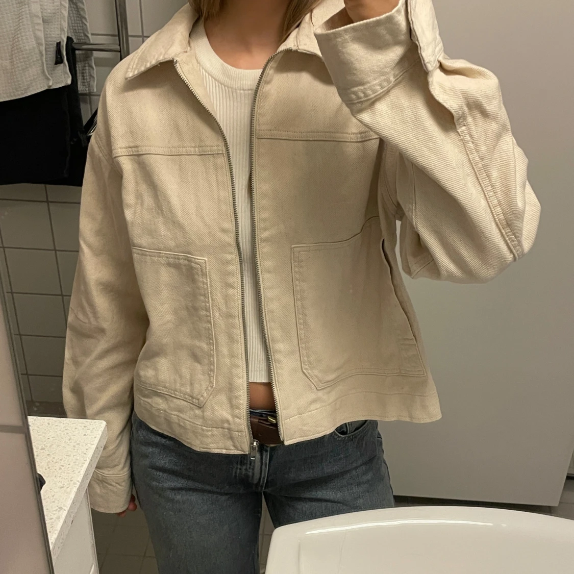 En riktigt snygg helt ny, PRISLAPP KVAR, ljusbeige jeansjacka med silverdragkedja och två fickor, från ASOS. Slutsåld på ASOS. PRODUKTKOD: 138684803. Köpte den för 599kr. Storlek Medium. Perfekt för en stilren look. Jag missade tyvärr policyn för returdatum och kunde inte returnera den (beställde fler storlekar), därför försöker jag sälja den här. Den är normal i storleken. Skriv för fler bilder/frågor :)