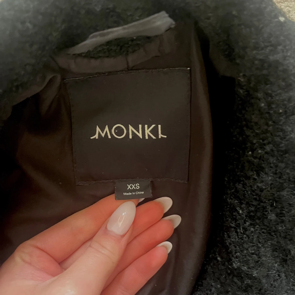 Mysig svart kappa från Monki i storlek XXS. Jackan passar mig som vanligtvis har S. Kom med prisförslag 🩷