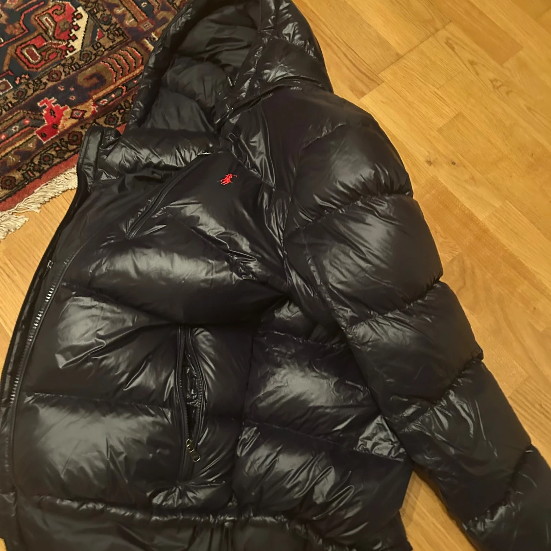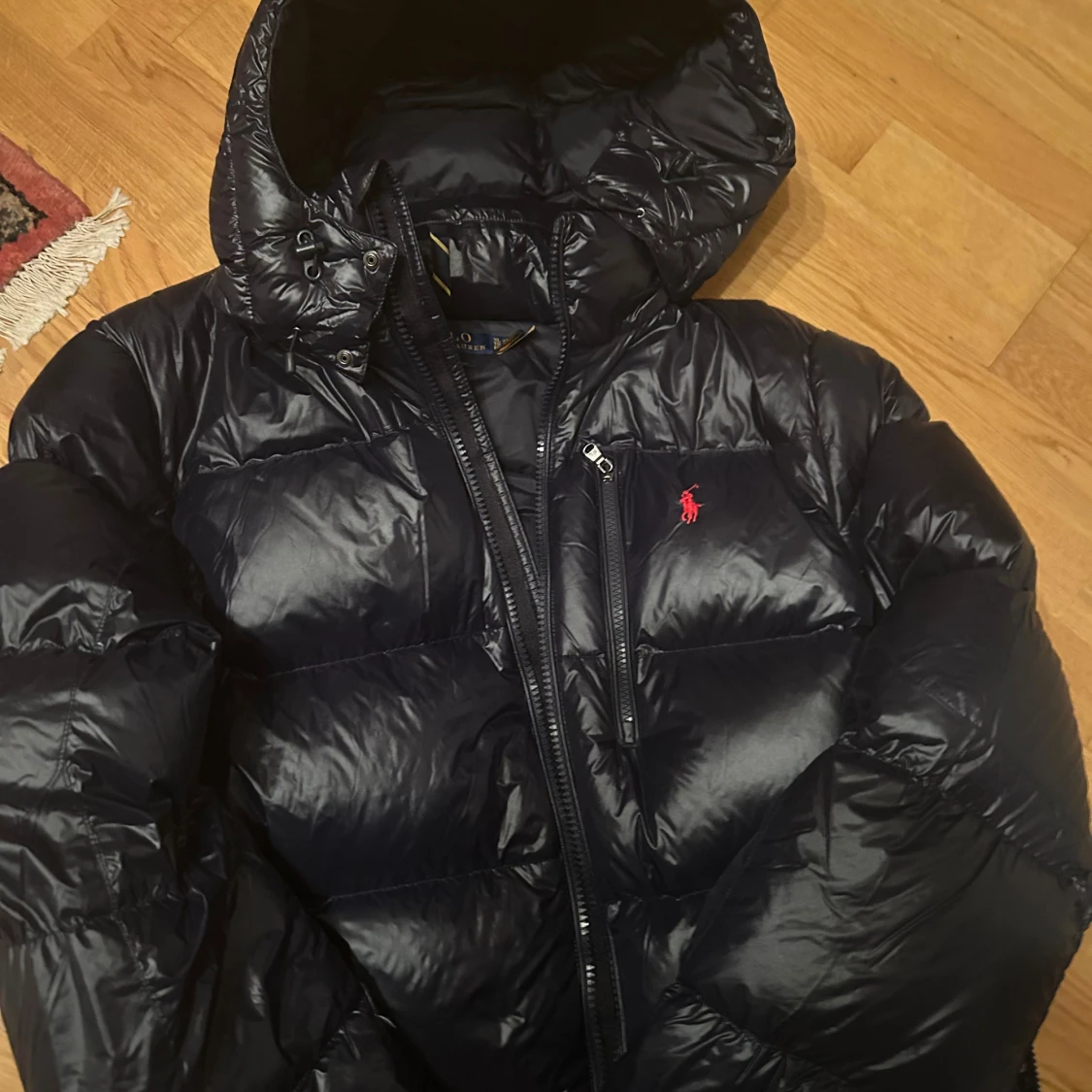 Snygg mörkblå dunjacka från Polo Ralph Lauren med glansig finish, huva och dragkedjor. HELT OANVÄND! Snygg röd logga på bröstet och flera praktiska fickor. Perfekt för kalla dagar när du vill hålla stilen och värmen. Köpt från zalando och kvitto och orderbekräftelse finns! Säljer pga att jag fick min brorsas istället och köpte denna i våras! Kontakta vid minsta fråga! KÖPT OCH FORTFARANDE NYPRIS 6700kr