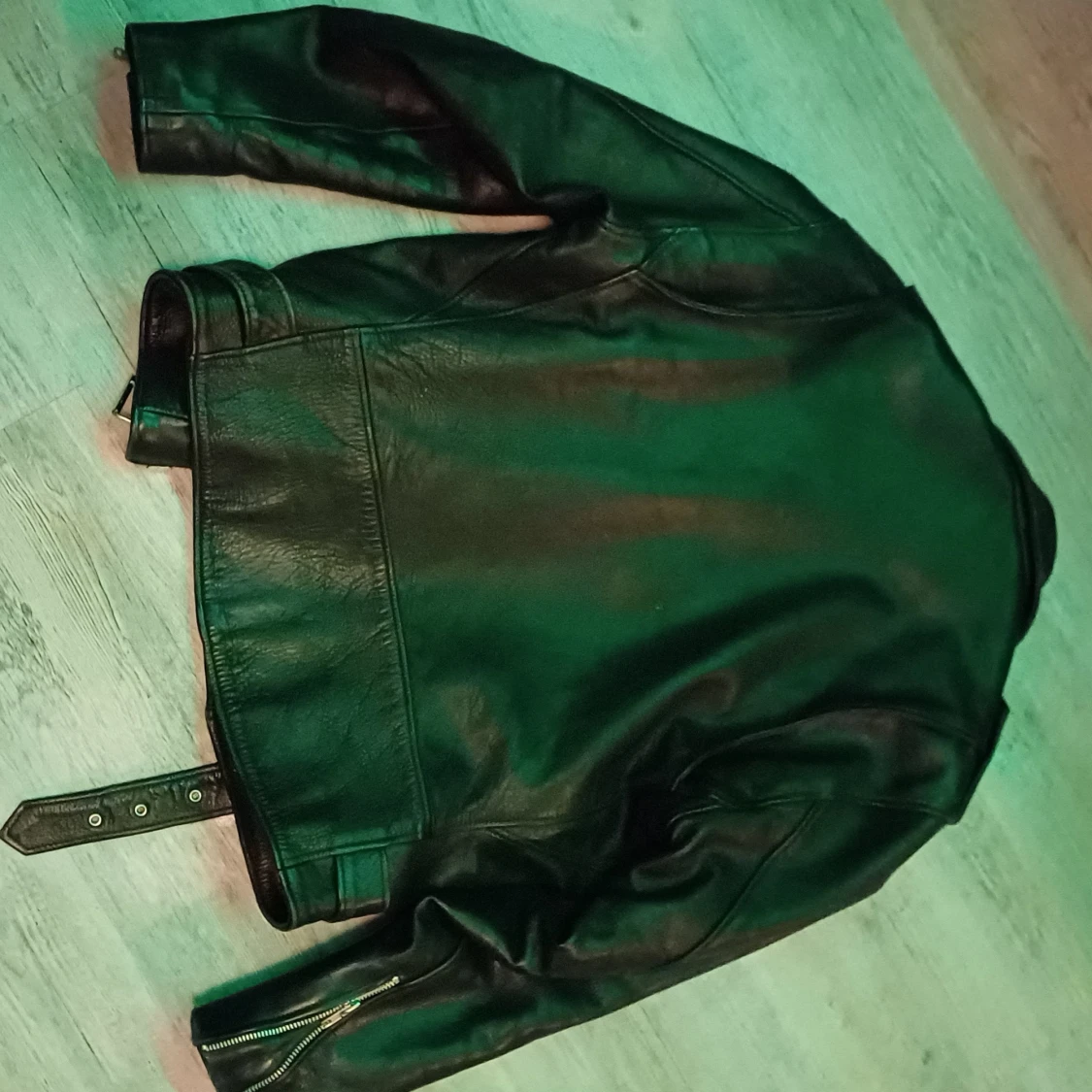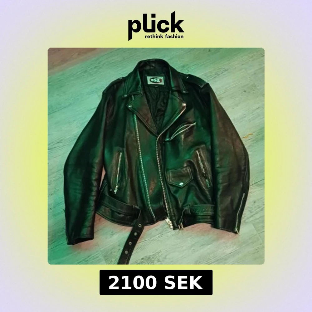 Snygg svart skinnjacka från OSX i äkta läder med coola dragkedjedetaljer och bälte i midjan. Jackan har en klassisk bikerstil med långa ärmar och flera fickor. Perfekt för en edgy look! Nypris:2500kr