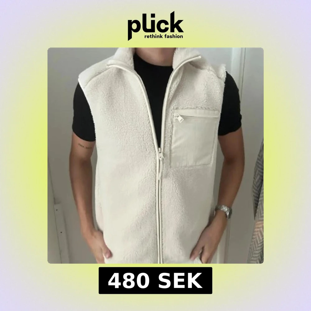 Säljer en stilren beige fleeceväst med dragkedja och bröstficka. Perfekt för lager-på-lager under kyliga dagar. Västen har en enkel design och är lätt att matcha med olika outfits.