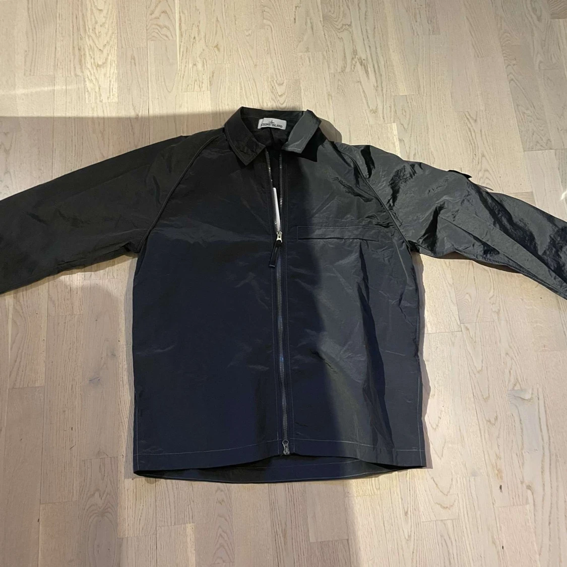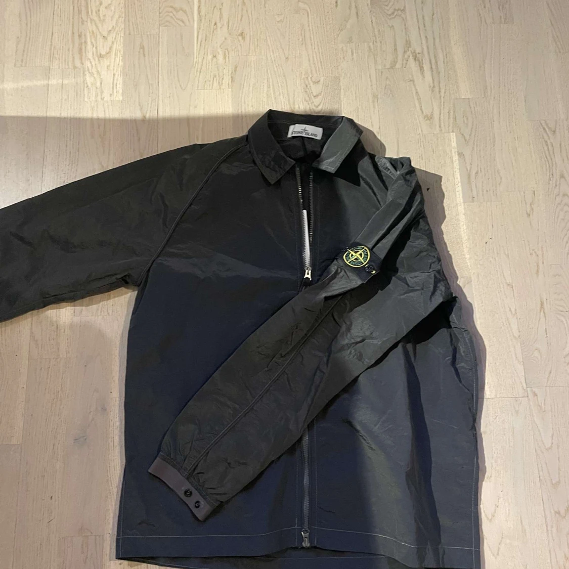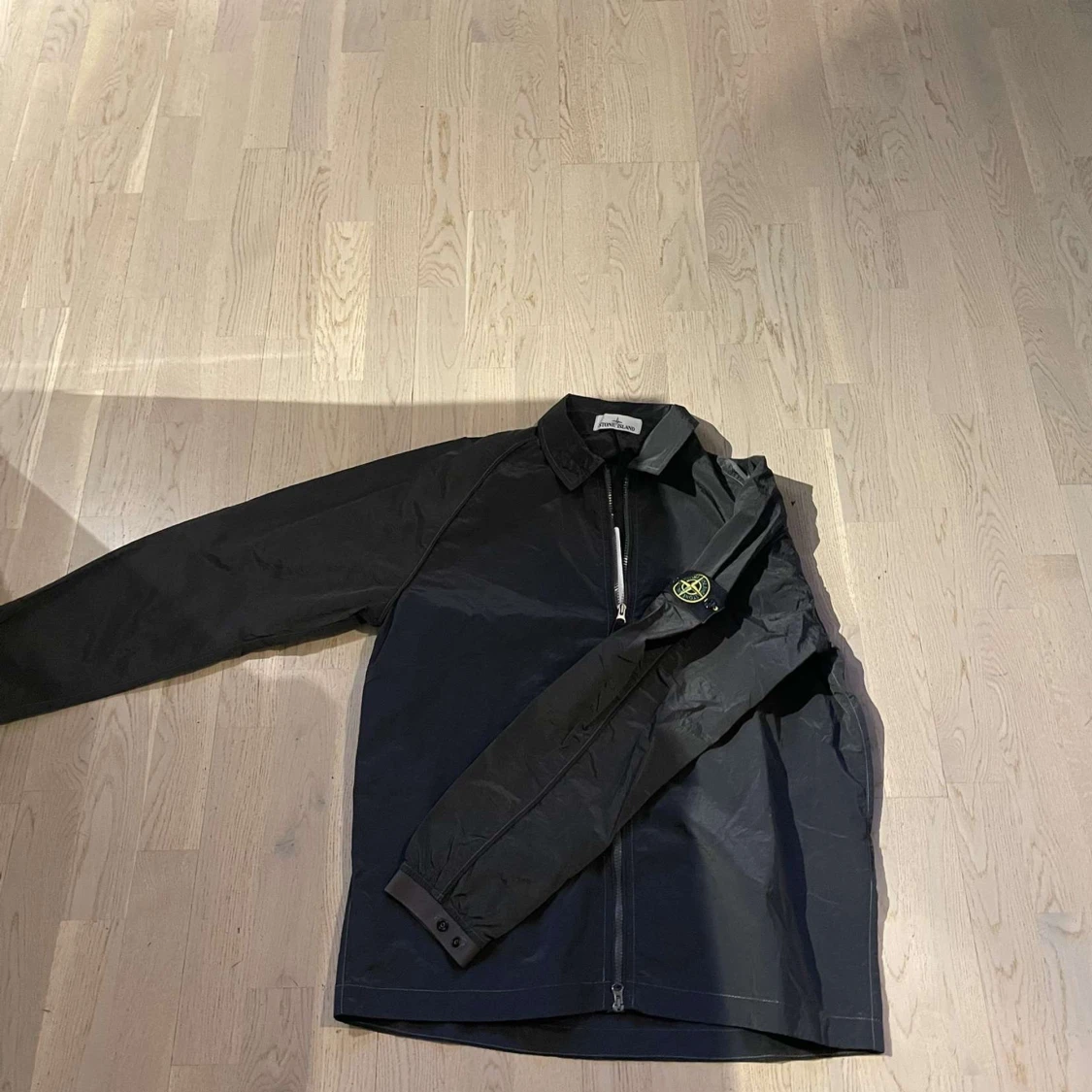 Svart overshirt från Stone Island med klassisk krage, hel dragkedja framtill och ikonisk patch på vänster ärm. Jackan är tillverkad i lätt polyester och har en clean, stilren look som passar perfekt till streetwear. Långärmad modell med knapp vid ärmslut. Storlek Large och helt ny säljer för den inte passa mig⚠️