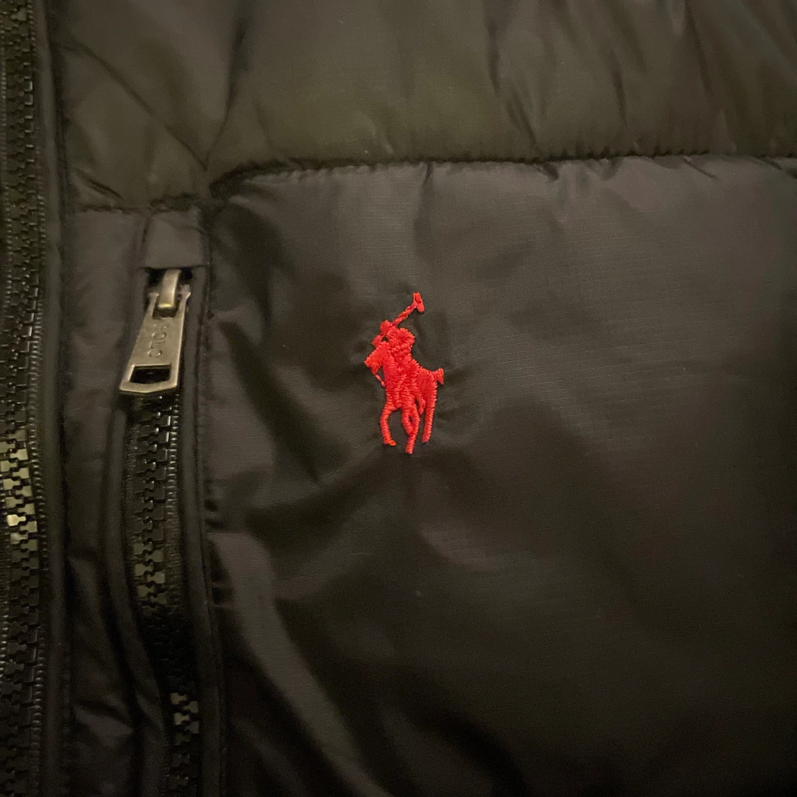 Svart pufferjacka från Polo Ralph Lauren med röd broderad logga på bröstet. Jackan har huva, dragkedja framtill och två sidofickor med dragkedja. Perfekt för kalla dagar och riktigt snygg streetstil. Fick i födelsedags present för nått år sen och har legat i garderoben, har ingen om äkta eller ej.