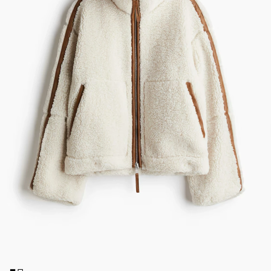 SÖKER denna vita teddyjacka med bruna detaljer