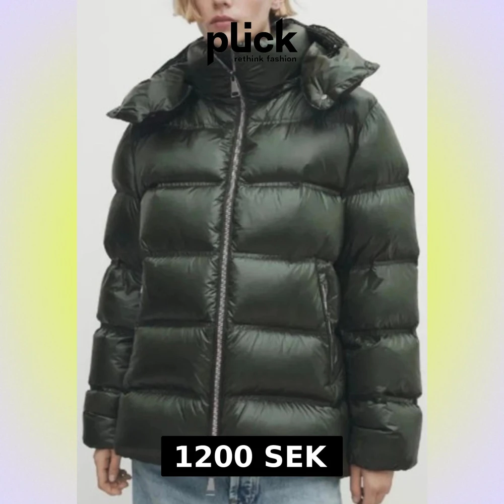 SÖKER Mörkgrön pufferjacka med dragkedja