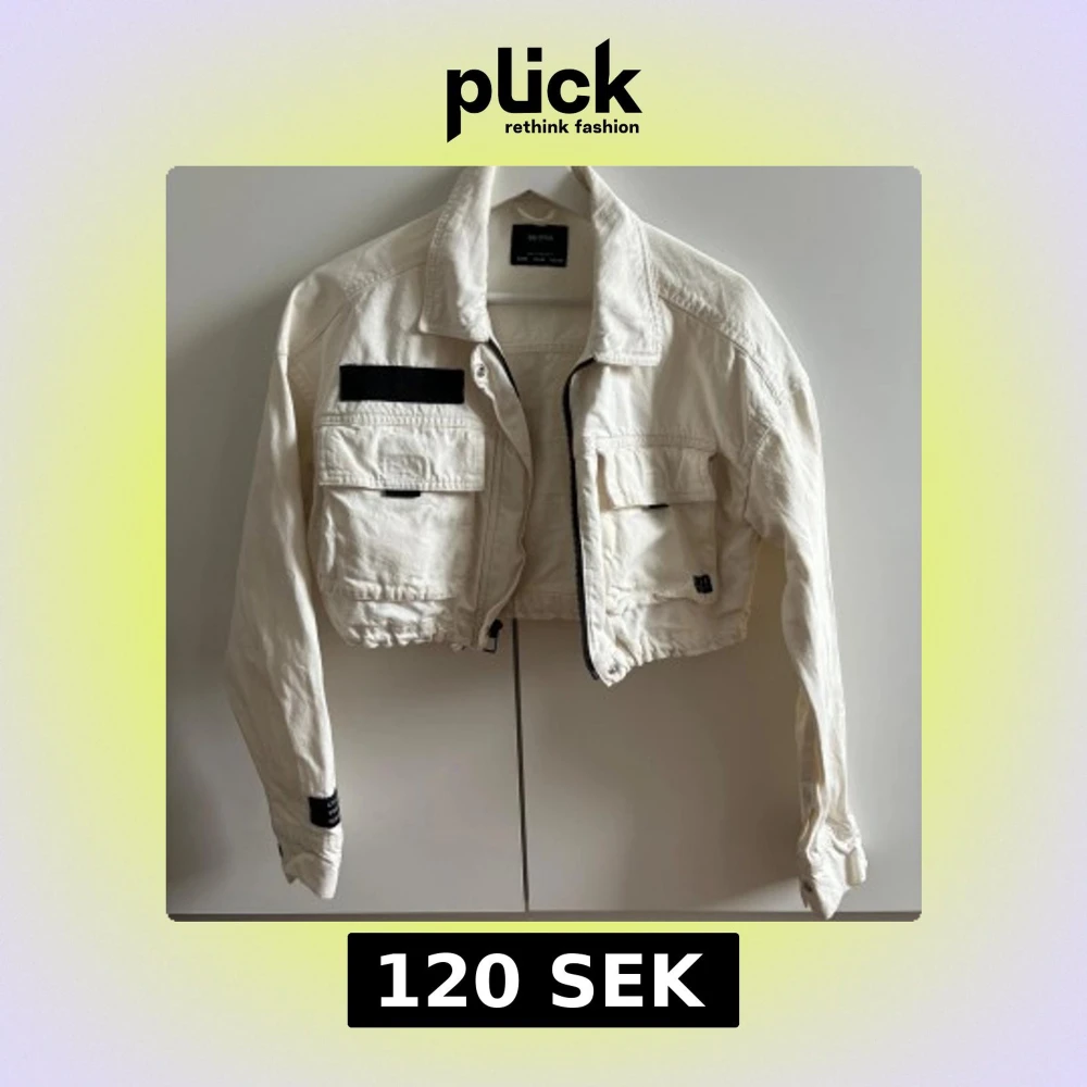Säljer en snygg beige croppad jacka från Bershka i stolen M för 120kr