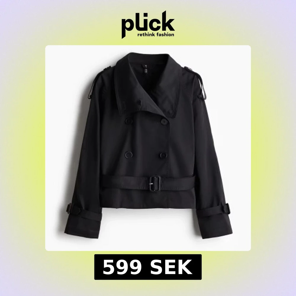 Snygg & populär svart trenchcoat med dubbelknäppning och bälte i midjan från H&M. Helt slutsåld med alla prislappar kvar