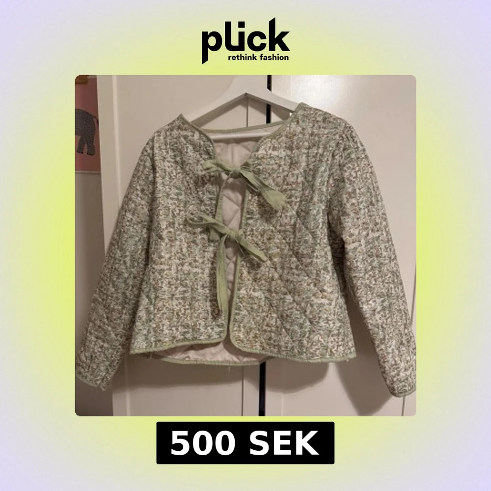 Säljer en unik grön quiltad jacka med ett diskret mönster och knytband framtill. Jackan har långa ärmar och en rund halsringning. Köpt i Spanien och ingen storlek! Men har vanligtvis runt S-M❤️