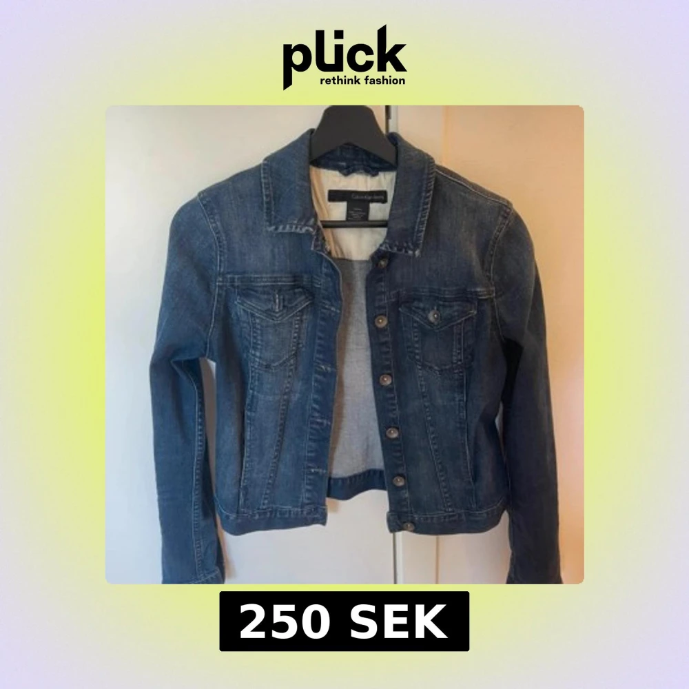 Snygg klassisk blå jeansjacka från Calvin Klein Jeans med knappar framtill och två bröstfickor med lock. Superfin mörk tvätt.