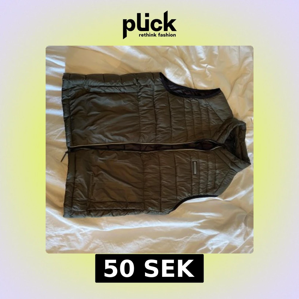 Säljer en mörkgrun dunväst från Jack n Jones. Västen har en stilren look med diskreta sömmar och är perfekt att slänga över en hoodie eller tröja. Materialet är lätt och smidigt, vilket gör den enkel att bära under kyliga dagar. Storleken är L men sitter mer som M eller S